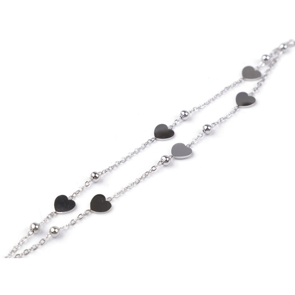 Dvojitý náramek se srdíčky a kuličkami má kvalitní zpracování z nerezové oceli. Řetízky jsou klasické očkové, srdíčka mají vysoký zrcadlový lesk. Náramek se dá nosit jako doplněk k jakémukoliv oděvu, potěší srdce každé ženy, bude perfektním dárkem na Valentýna.