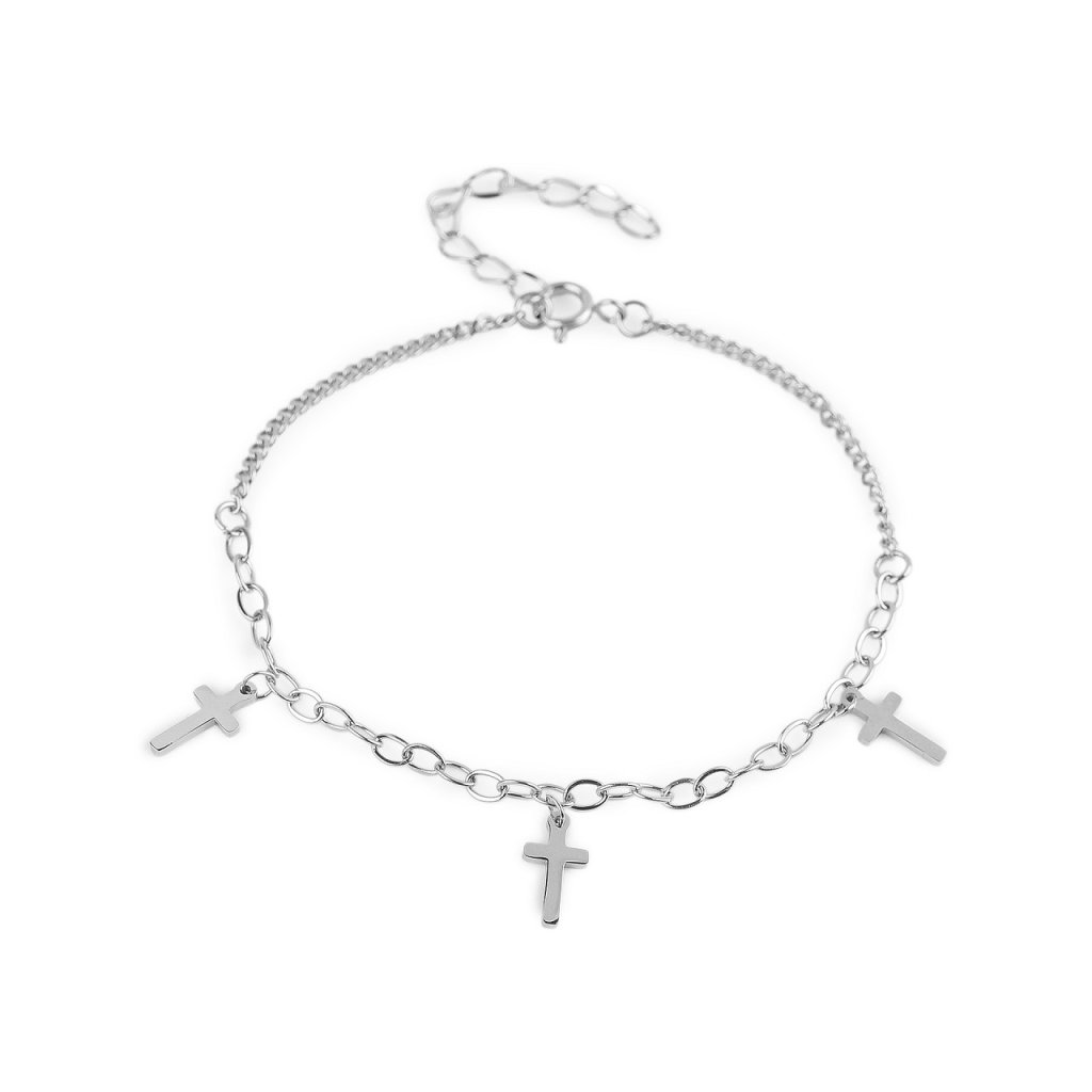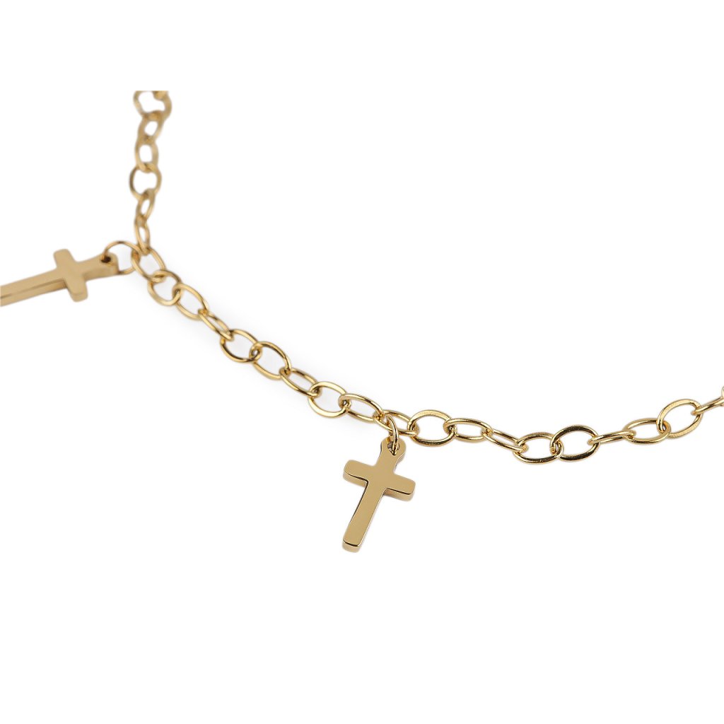 Náramek z nerezové oceli s křížky má jednoduchý a elegantní design. Je ideálním módním doplňkem pro každodenní nošení.