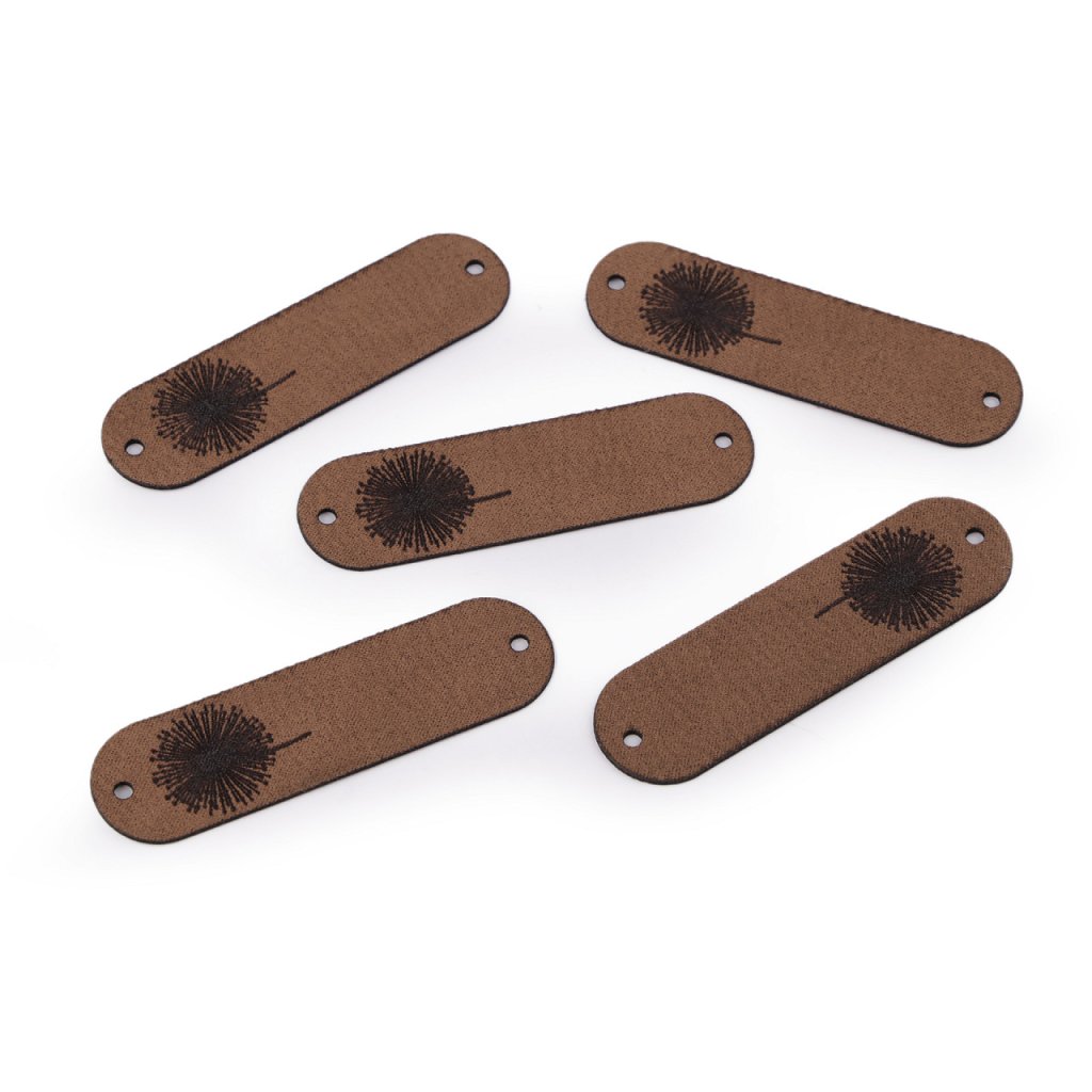 Cedulka z eko kůže je ozdobená jednostranným obrázkem odkvetlé pampelišky. Na obou koncích má otvory k přišití nebo navlečení provázku. Na dotek je nášivka měkká a poddajná, ale přitom pevná. Je pratelná při teplotě 40 °C.