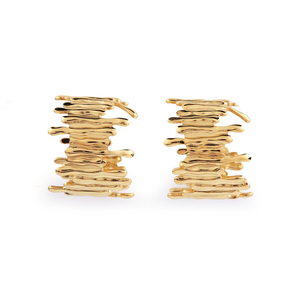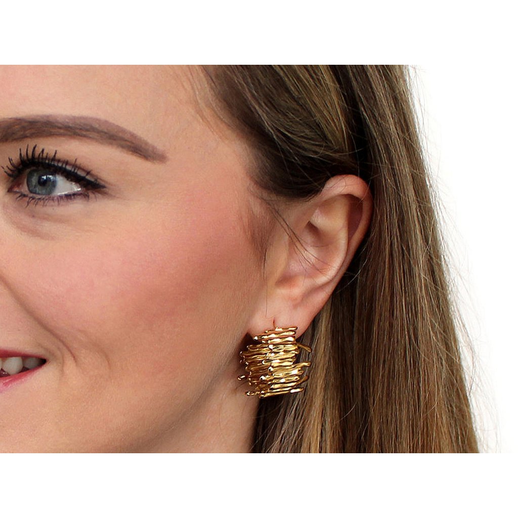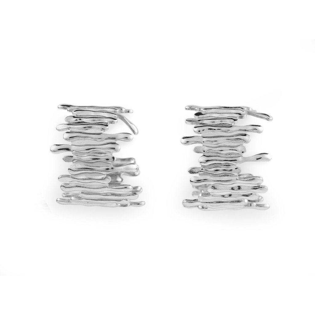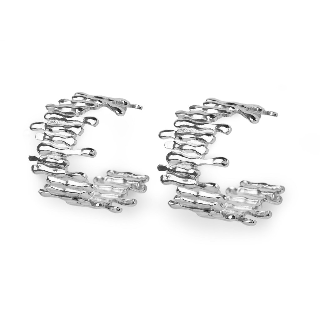 Extravagantní náušnice z kvalitní nerezové oceli mají tvar neuzavřeného kruhu. Zaujmou svou strukturou, skvěle doplní byznys styl oblékání, jeansovou módu, ležérní outfity i společenské šaty. Mají vysoký lesk kombinovaný s matem.