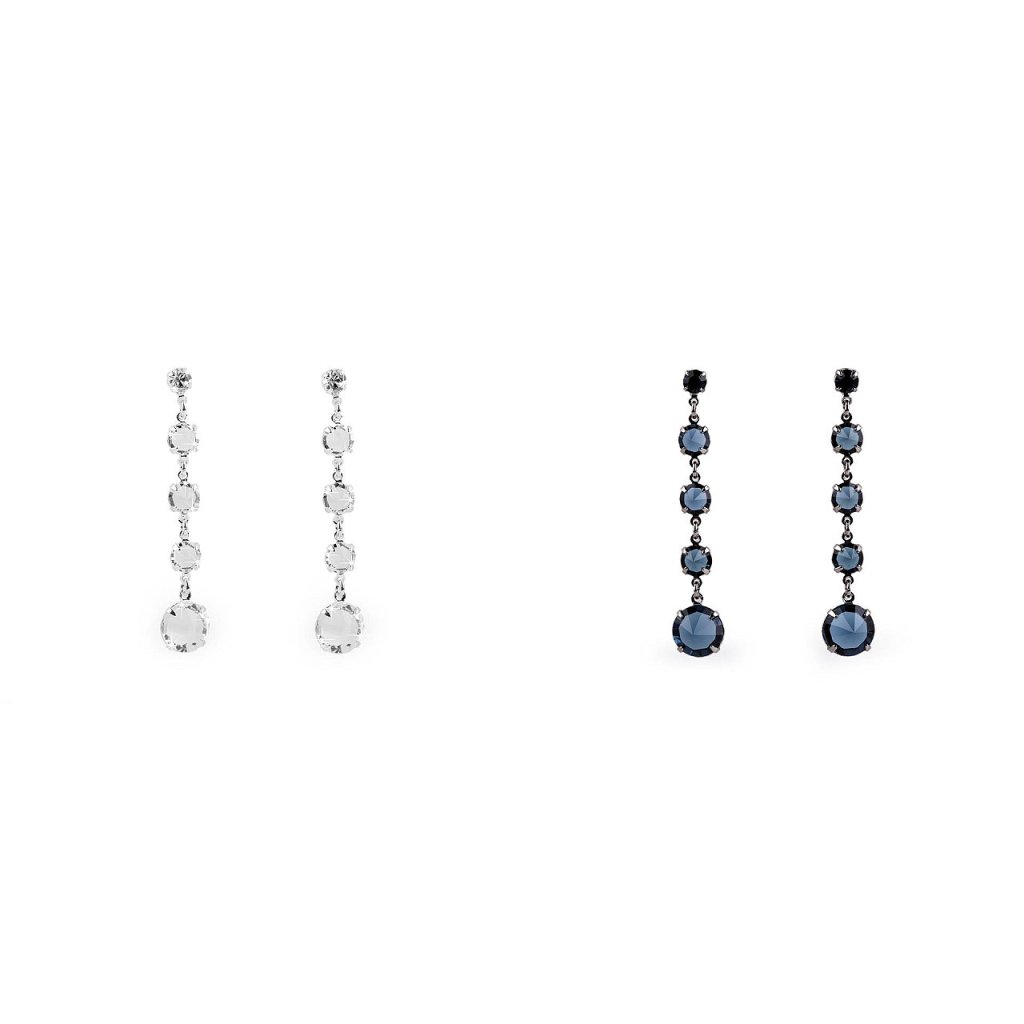 Dlouhé visací náušnice s broušenými kamínky jsou velice elegantní, ženy je ocení na slavnostní události. Skleněné broušené kamínky prvotřídní české kvality jsou pevně zasazené do kovového lůžka, poutavě se třpytí.