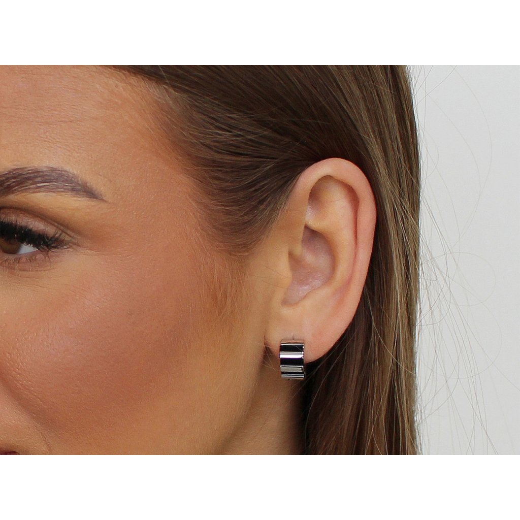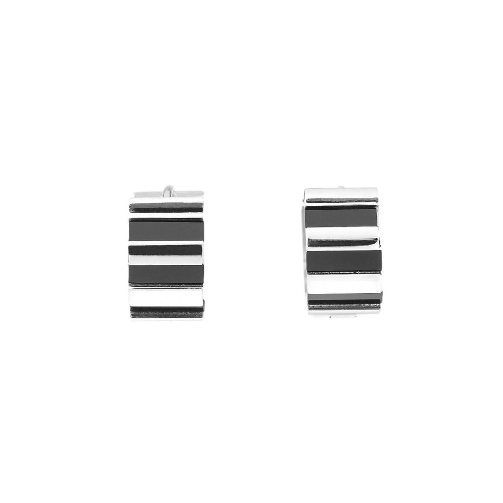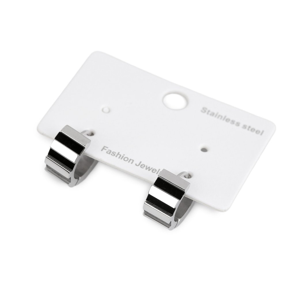 Náušnice kroužky z kvalitní nerezové oceli vkusně doplní jakýkoliv outfit, hodí se ke každodennímu nošení. Na přední straně je zdobí 3 vodorovné černé pruhy. Skvěle doplní byznys styl oblékání, jeansovou módu i ležérní outfity. Působí velice decentním dojmem, mají zrcadlový lesk.