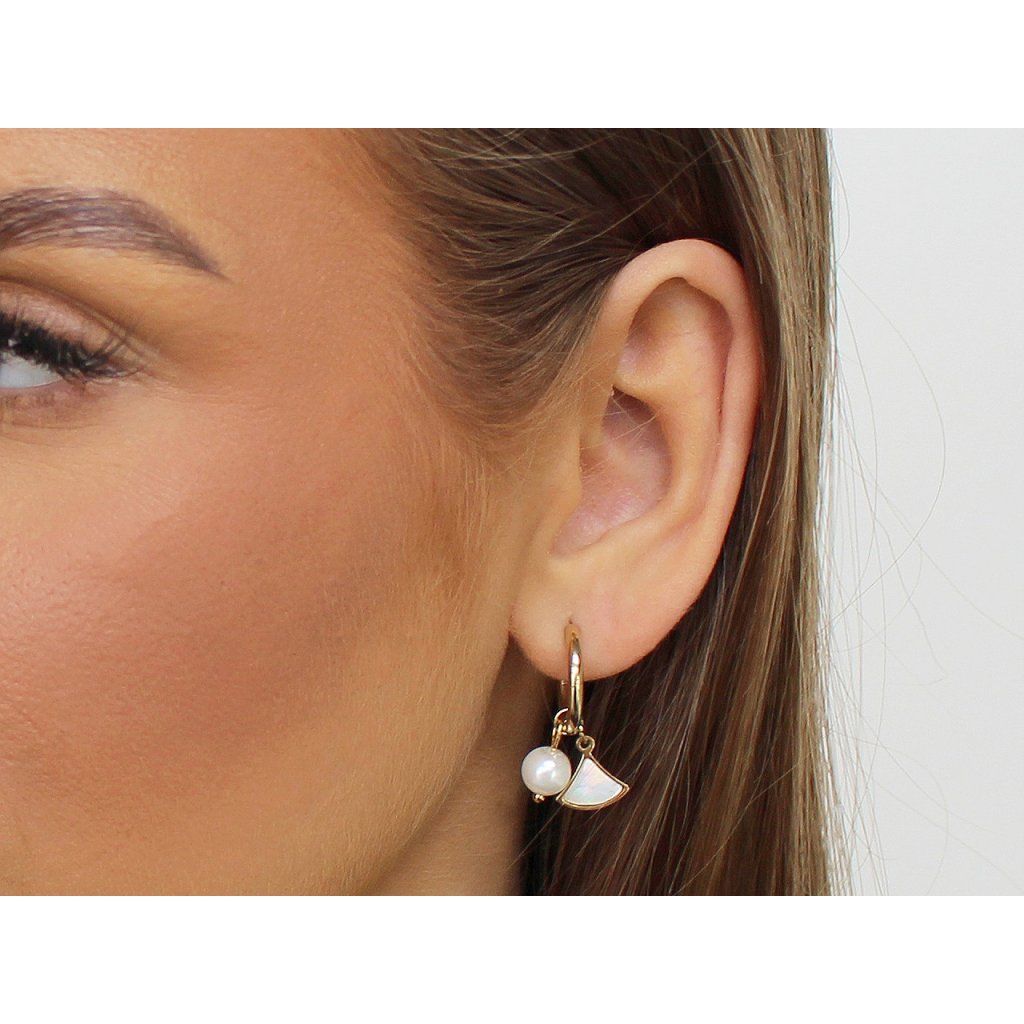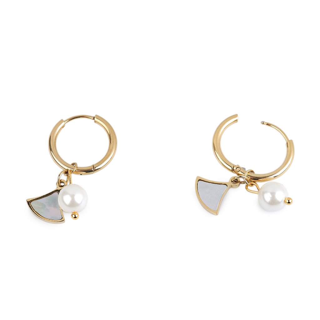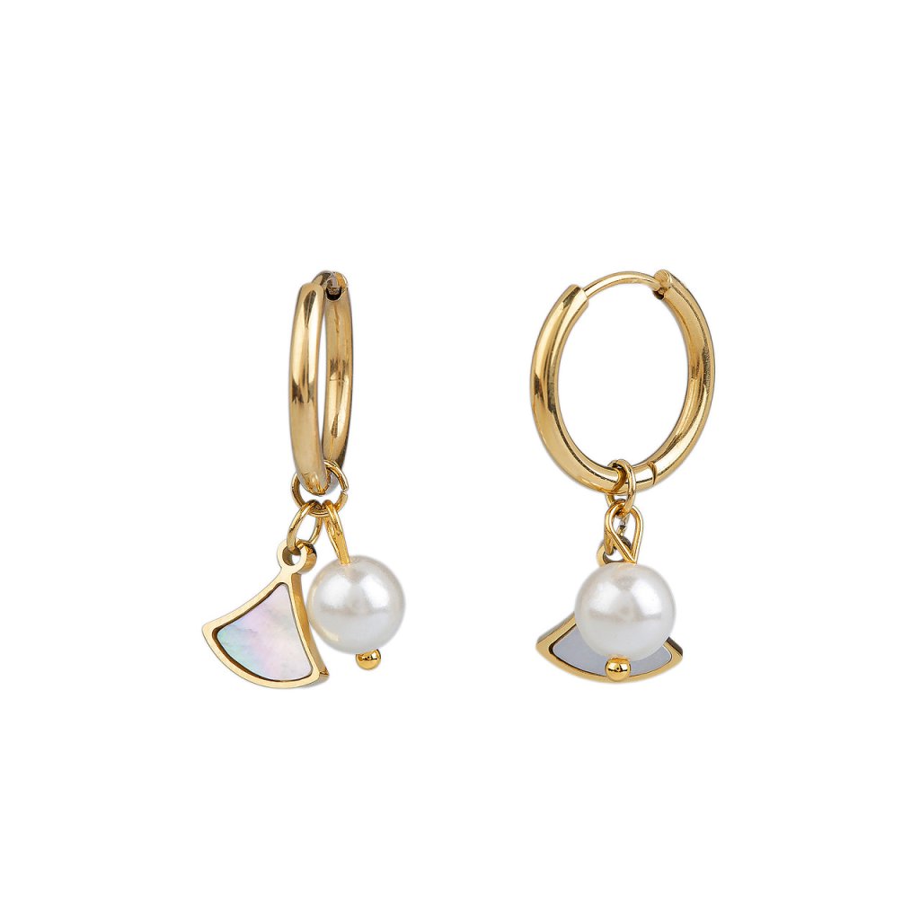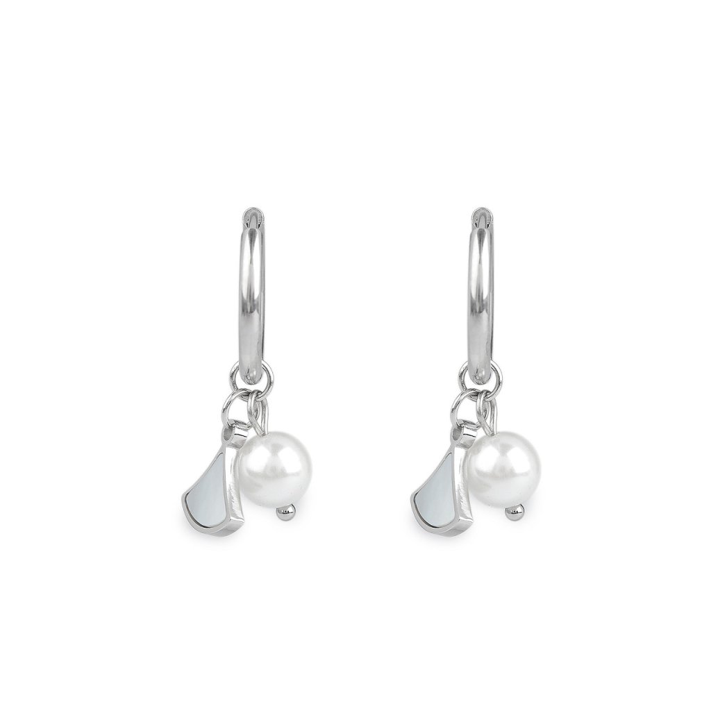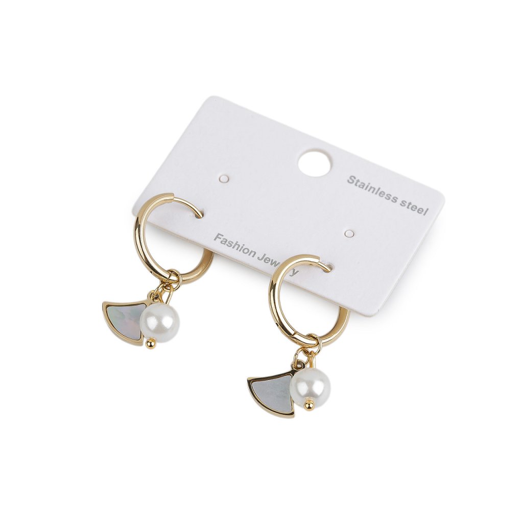 Náušnice kroužky jsou vyrobené z kvalitní nerezové oceli. Dole jsou ozdobené přívěskem perly a lístečku s vsazenou imitací perleti. Jsou velice elegantní, oceníte je ke každodennímu nošení, ale i ke slavnostním příležitostem. Skvěle doplní byznys styl oblékání, ležérní outfity i společenské šaty.
