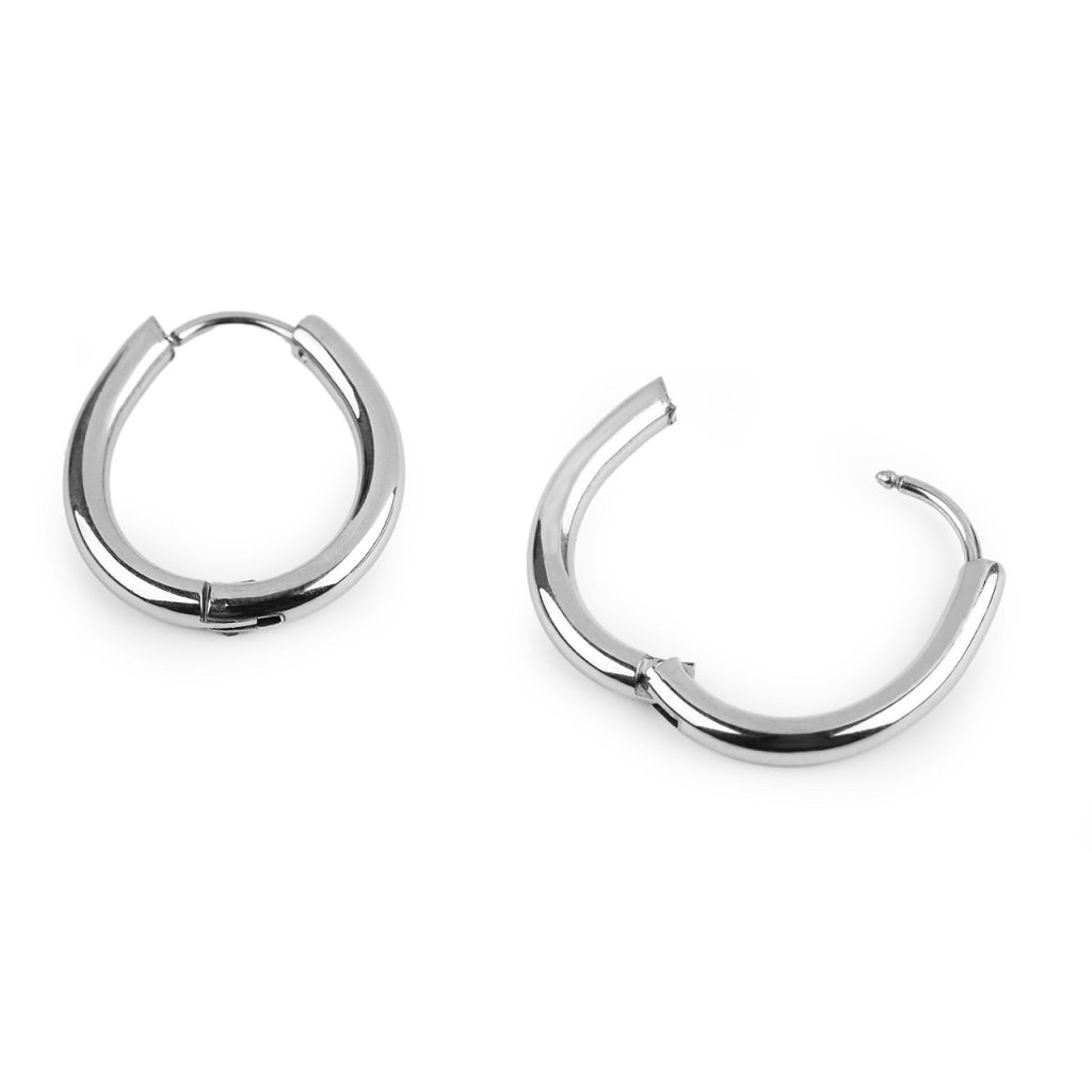 Elegantní kruhové náušnice mají moderní oválný tvar. Jsou vyrobené z kvalitní nerezové oceli. Jsou hladké, mají vysoký zrcadlový lesk. Hodí se k jakémukoliv outfitu, oblíbíte si je na každodenní nošení.