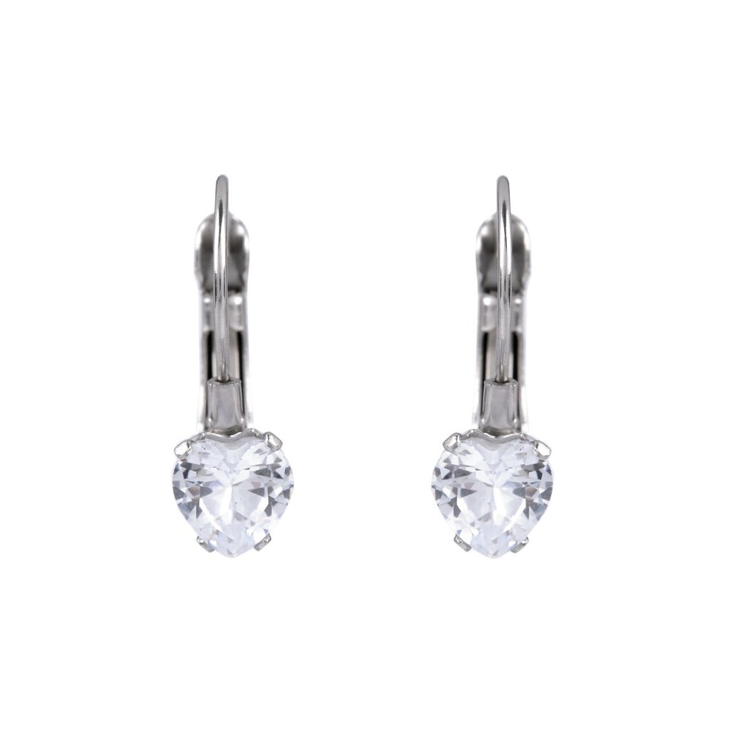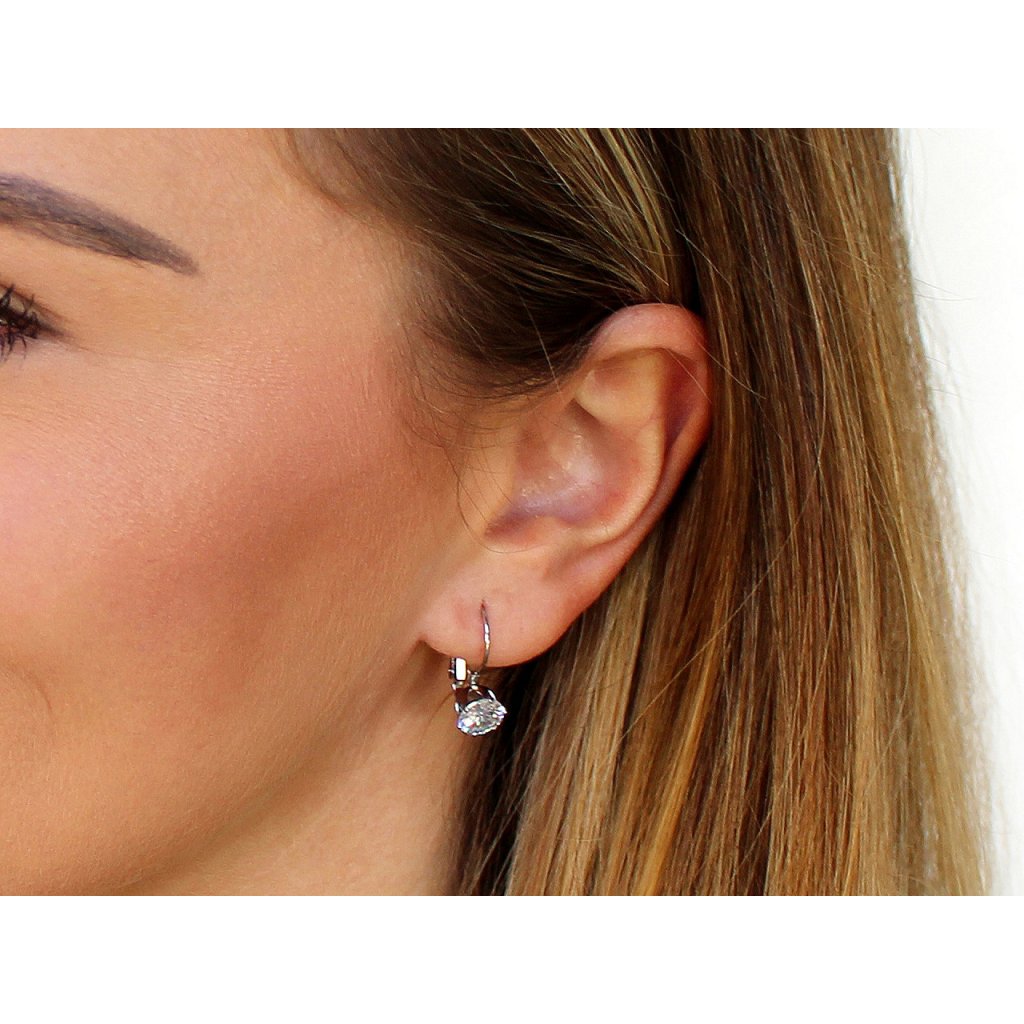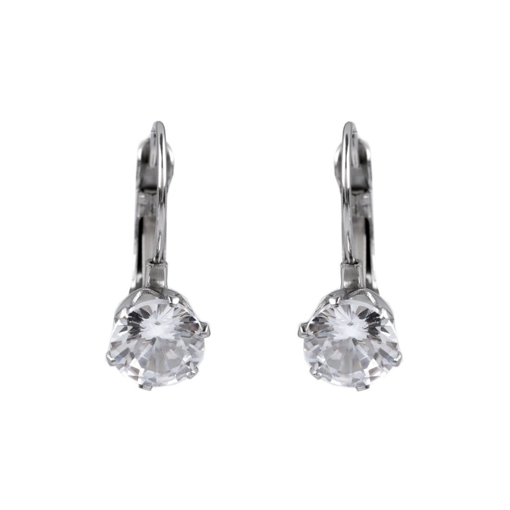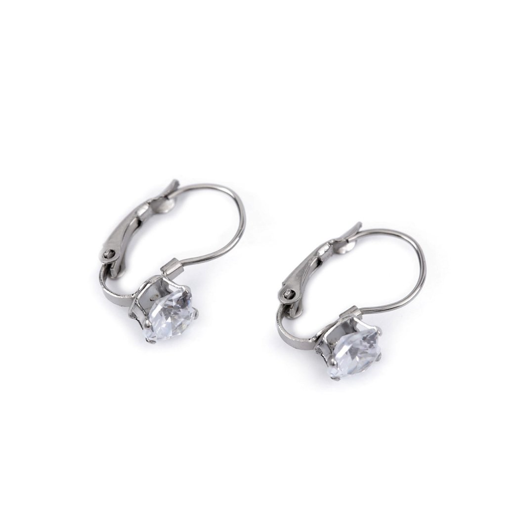 Visací náušnice jsou vyrobené z kvalitní nerezové oceli. Zdobí je třpytivý broušený kamínek. Mají mechanické zapínání. Jsou vhodné i pro menší slečny.