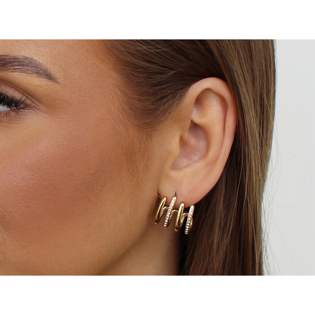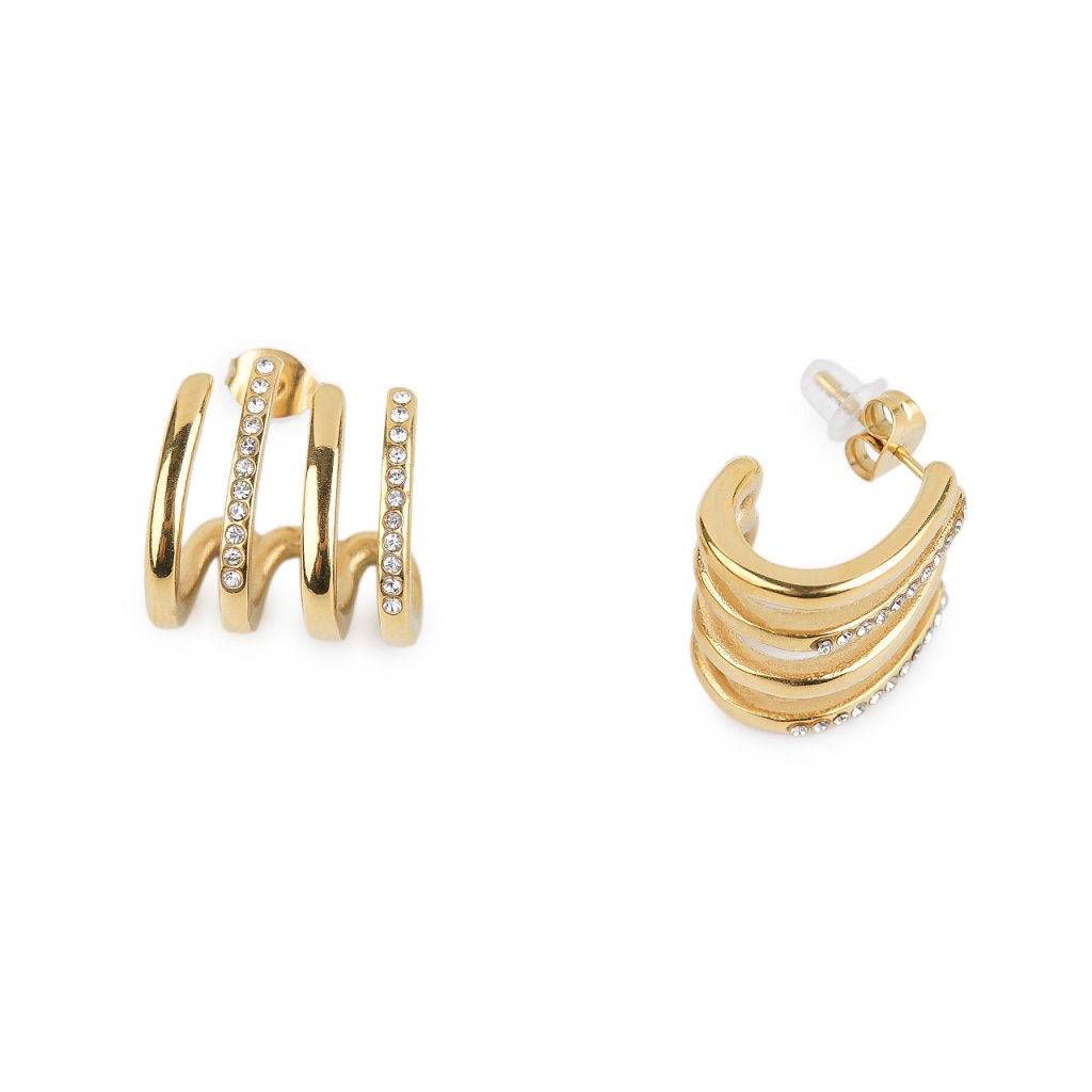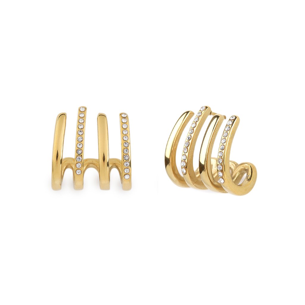 Elegantní náušnice z kvalitní nerezové oceli mají tvar neuzavřených oválných kroužků. Zaujmou broušenými kamínky a čtyřmi spojenými řadami, skvěle doplní byznys styl oblékání, jeansovou módu, ležérní outfity i společenské šaty. Mají vysoký lesk, kamínky se třpytí.