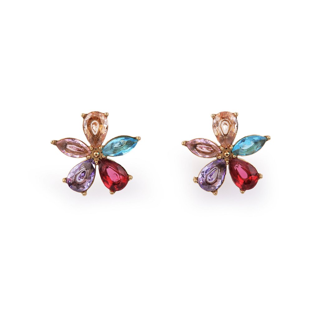 Náušnice z nerezové oceli s broušenými kamínky květy