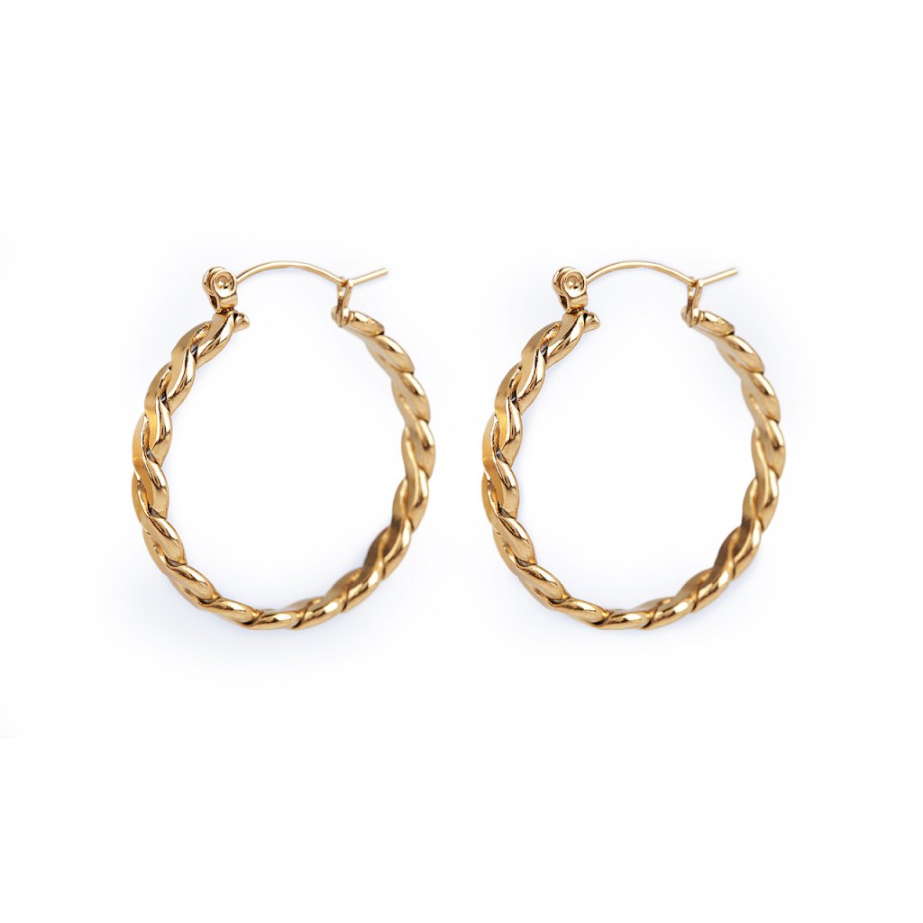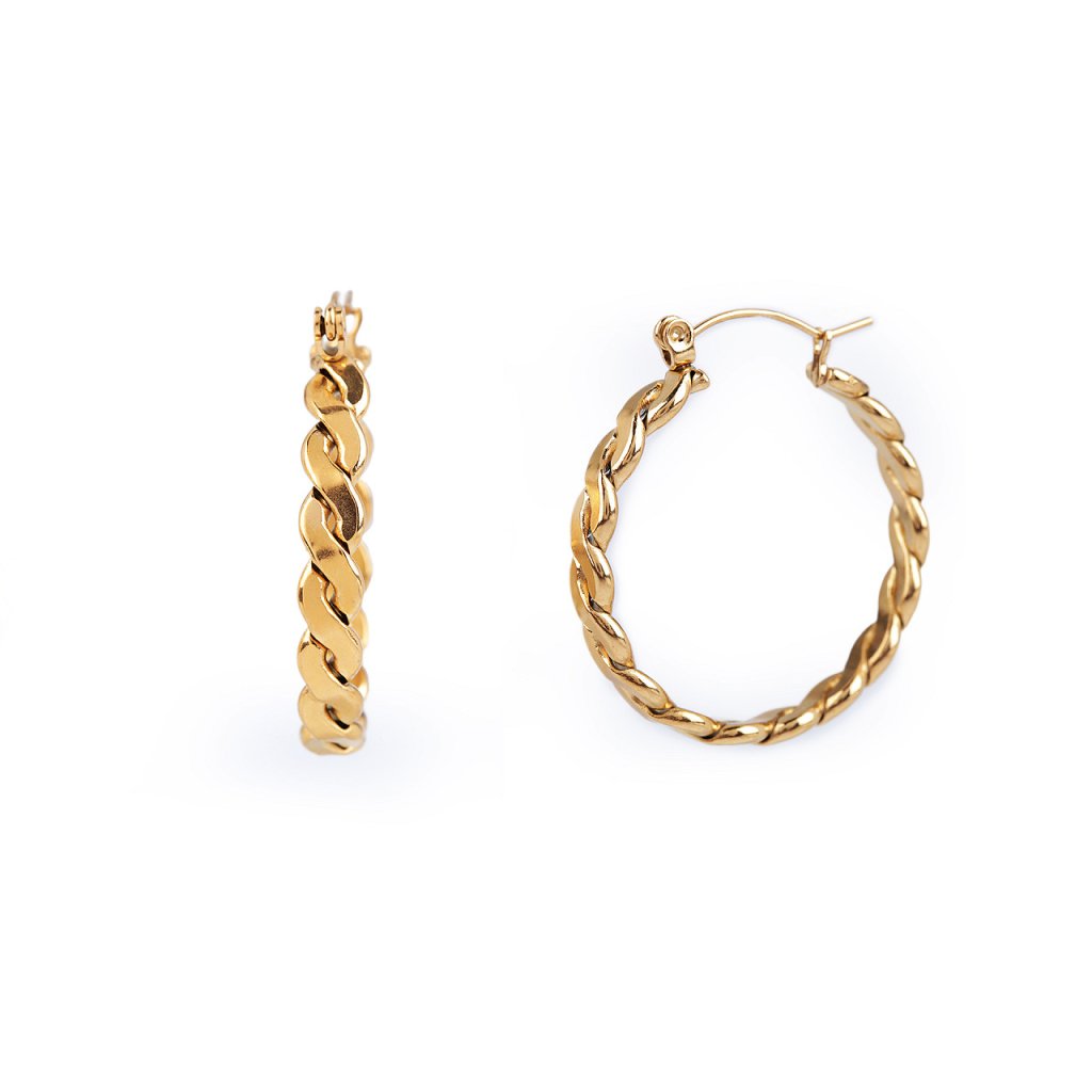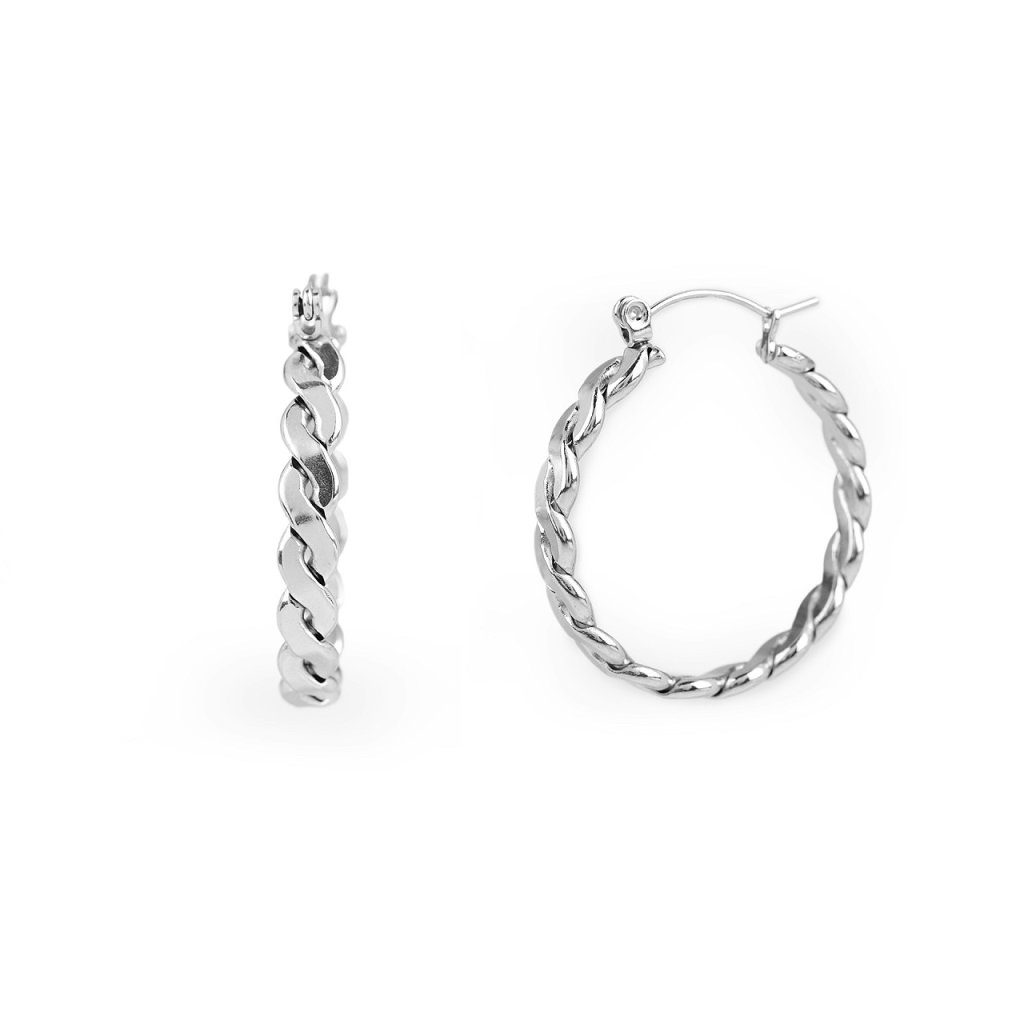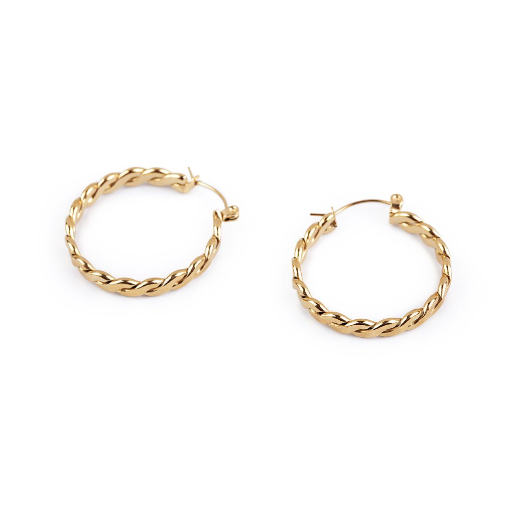 Náušnice z kvalitní nerezové oceli ve tvaru splétaných kruhů představují elegantní šperk, který zvýrazní váš styl. Mají vysoký lesk. Díky svému univerzálnímu vzhledu jsou ideální pro různé příležitosti – ať už jde o každodenní práci, večerní akce či formálnější události.