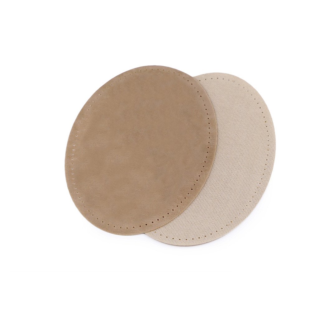 Pevné nažehlovací záplaty oválného tvaru jsou vyrobené ze semiše. Lepící vrstvu tvoří polyetylen. Jsou velice kvalitní, 0,5 cm od okraje mají umístěnou perforaci, díky které je můžete následně i přišít. V jednom sáčku jsou 2 záplaty. Použití: Jedná se o módní doplněk oděvů - košil, kalhot či sak, který působí velmi stylově. Je oblíbený hlavně tam, kde je potřeba zpevnit některé části oděvu (kolena, lokty atd.). Tyto nažehlovačky můžete použít i klasicky při záplatování bund, riflí, kalhot a dalšího oblečení. Návod použití: Záplatu přiložte lesklou stranou na látku (nepoužívejte umělé tkaniny). Poté položte na žehlicí prkno tak, aby aplikace byla vespod a přes ní látka. U napařovacích žehliček vypněte napařování. Přežehlujte z rubu pod větším tlakem po dobu 15 - 20 vteřin. Poté nechejte látku 15 minut vychladnout. Po nalepení drží pevně, přesto se doporučuje je prošít. Jeden sáček obsahuje 2 ks nažehlovacích záplat.- Rozměry: 10 x 14 cm