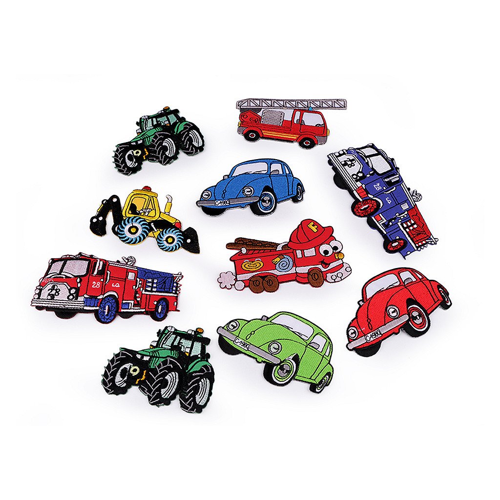 Dětský motiv nažehlovačky znázorňuje veselá autíčka.Použití: Textilní nažehlovačky mají mnohostranné využití. Slouží nejenom k opravě děravého oblečení, ale i k ozdobení oděvů.