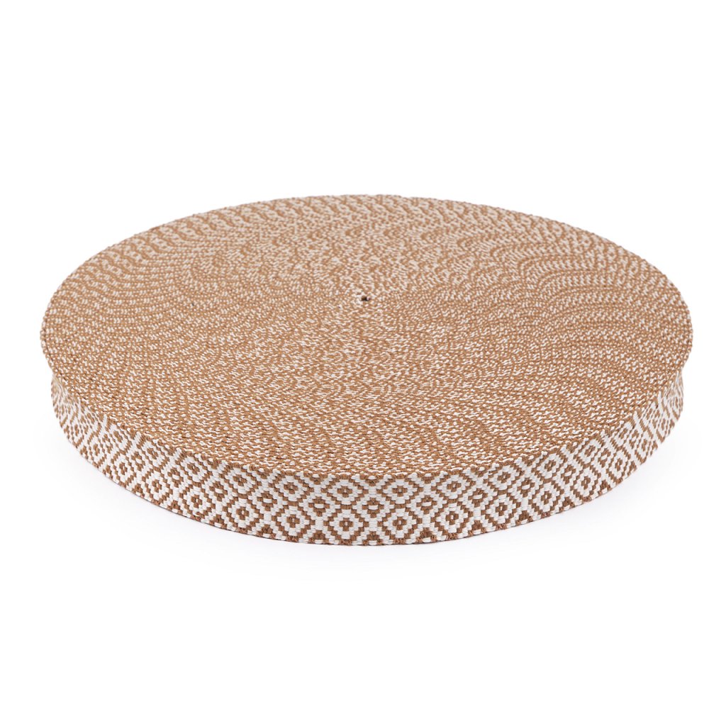 Textilní popruh je pevný, oboustranný a využijete ho jako ucho na batohy, tašky i kabelky. Je vhodný také na výplety nábytku, lehátek, saní, lemování textilních výrobků apod.