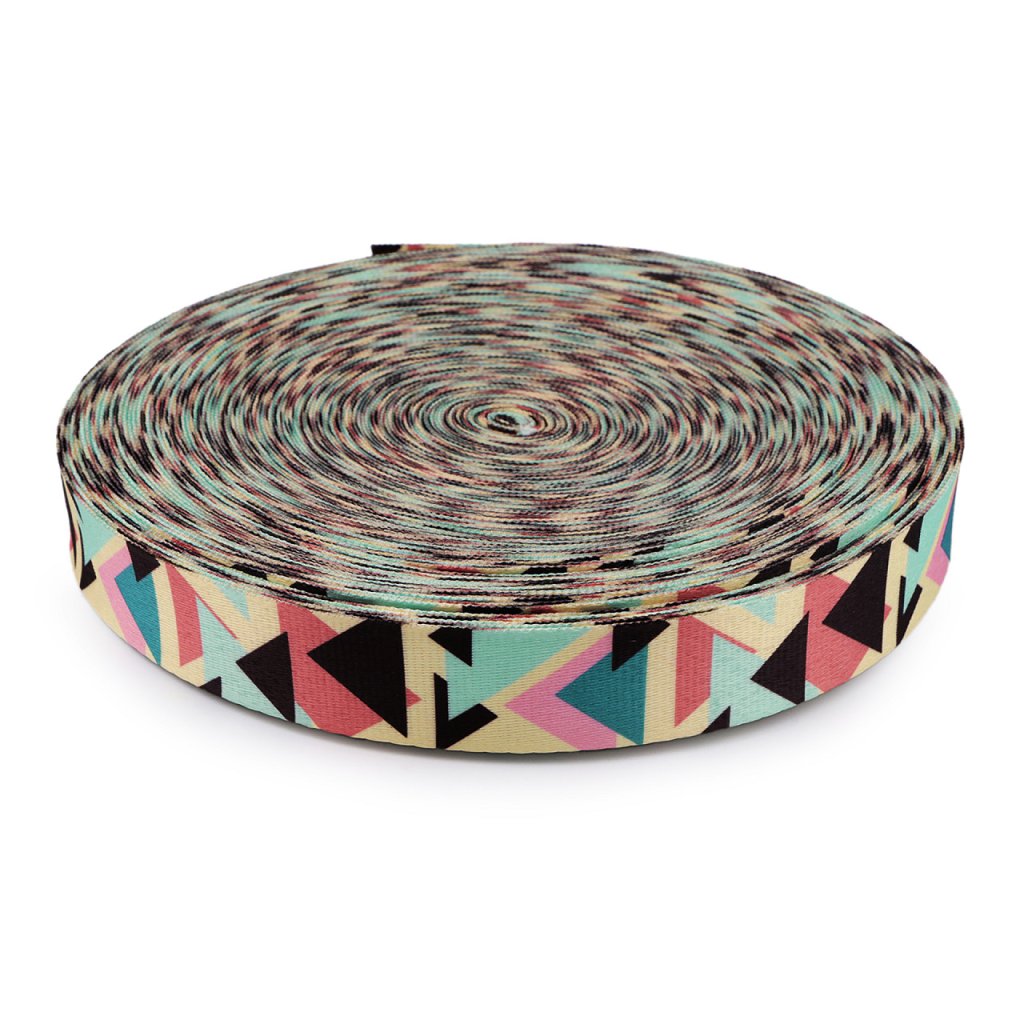 Pestře barevné popruhy vynikají svým kvalitním zpracováním a hladkou strukturou. Motiv je oboustranný. Popruh využijete na batohy, kabelky či tašky. Můžete jej také použít jako výplet čalouněného nábytku.