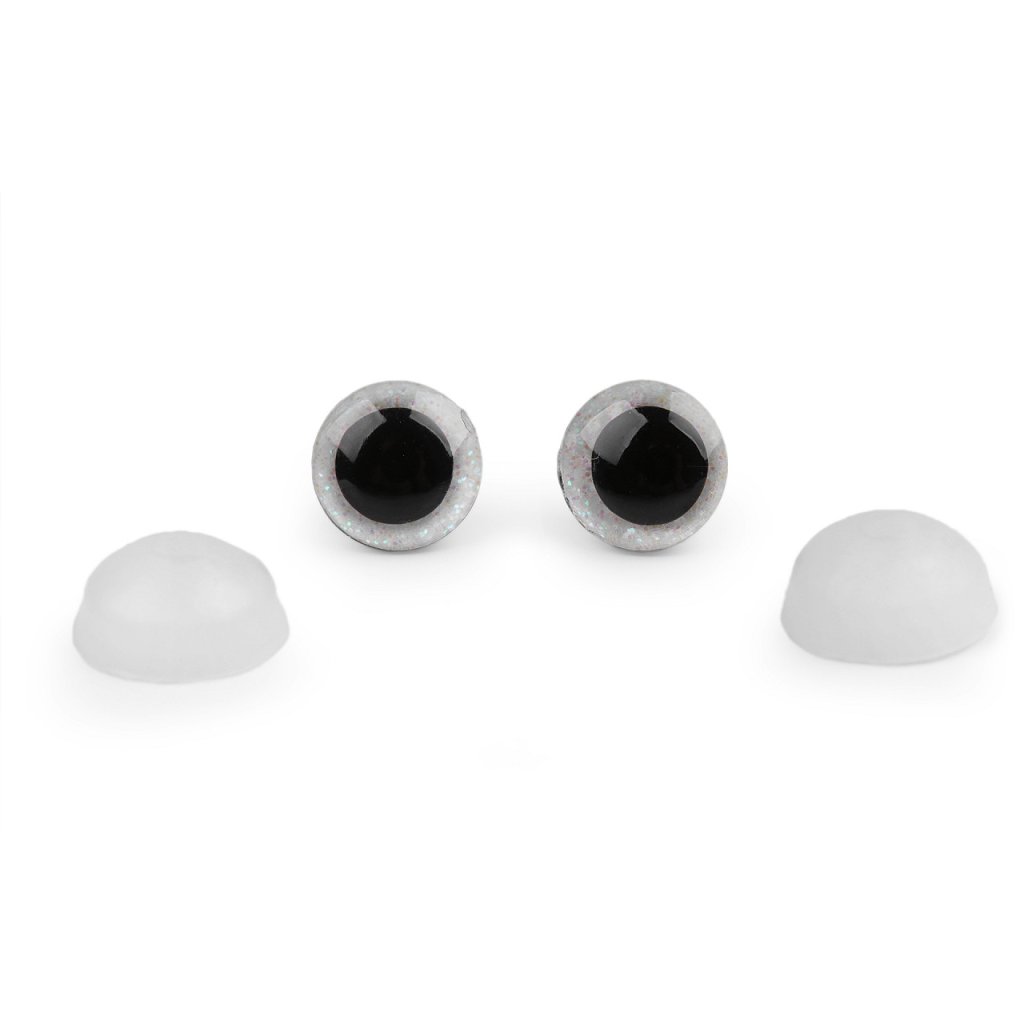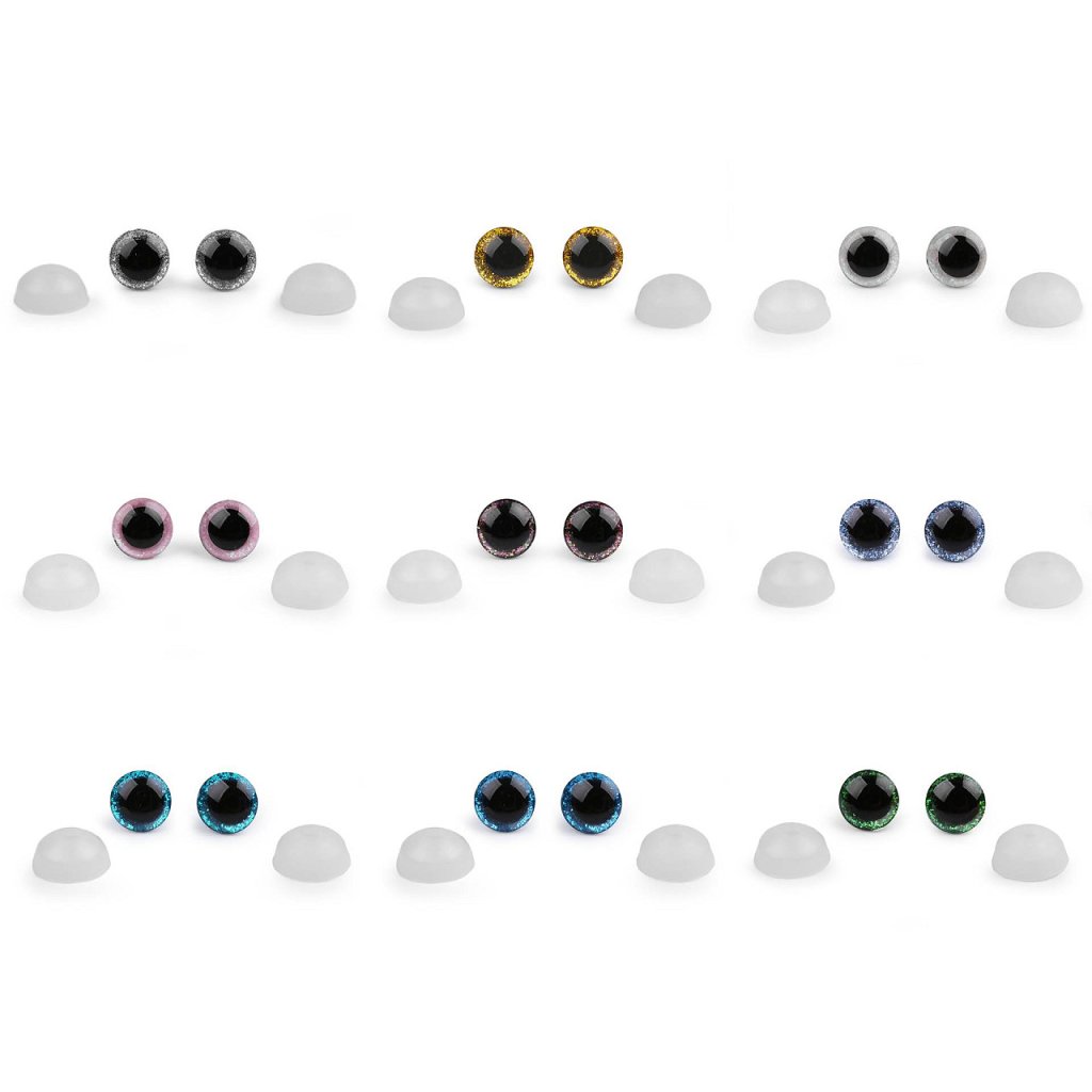 Polokulaté oči s glitrovou duhovkou se nádherně třpytí. Umocní výraz vašich nejrůznějších postaviček či zvířátek. Mají závit, na který se nasadí duhovka, následně se provleče materiálem, a z druhé strany se pak nacvakne pojistka, která oči bezpečně připevní na místo. Pokud nebudete chtít, aby se oči třpytily, nemusíte duhovku použít, v tom případě zůstane duhovka transparentní.