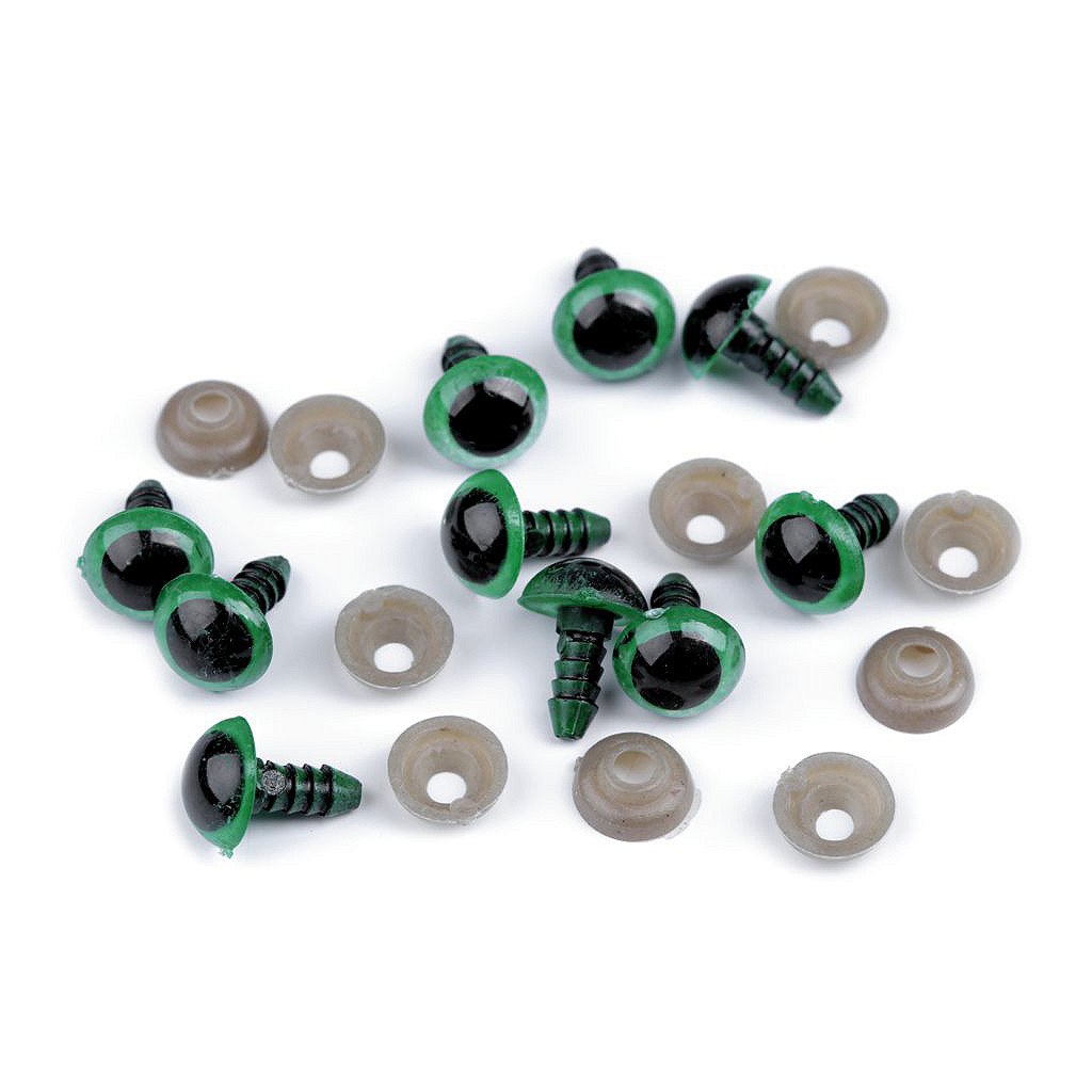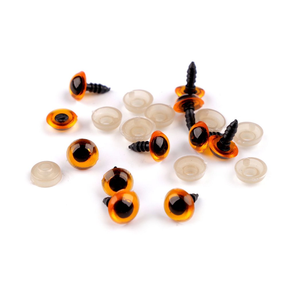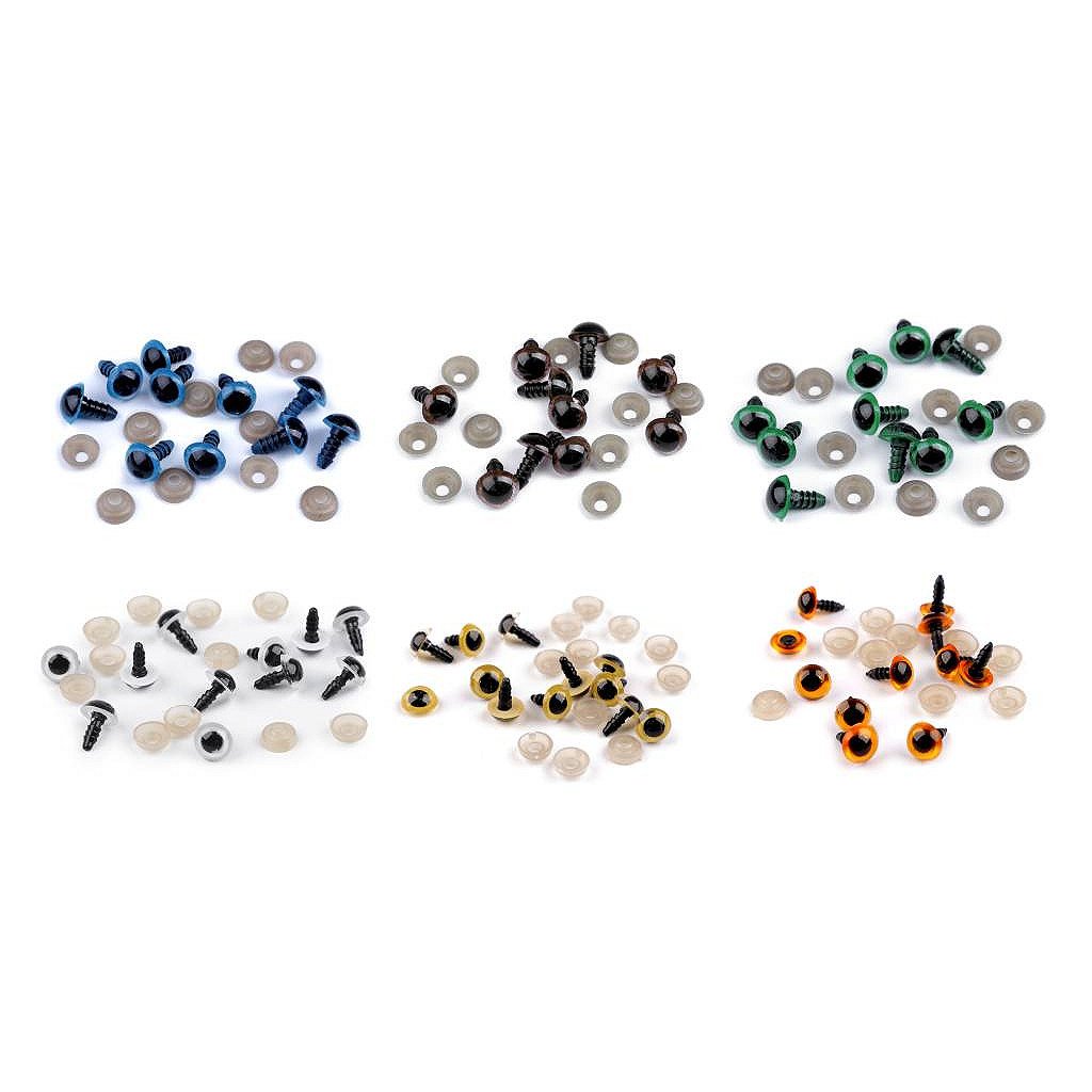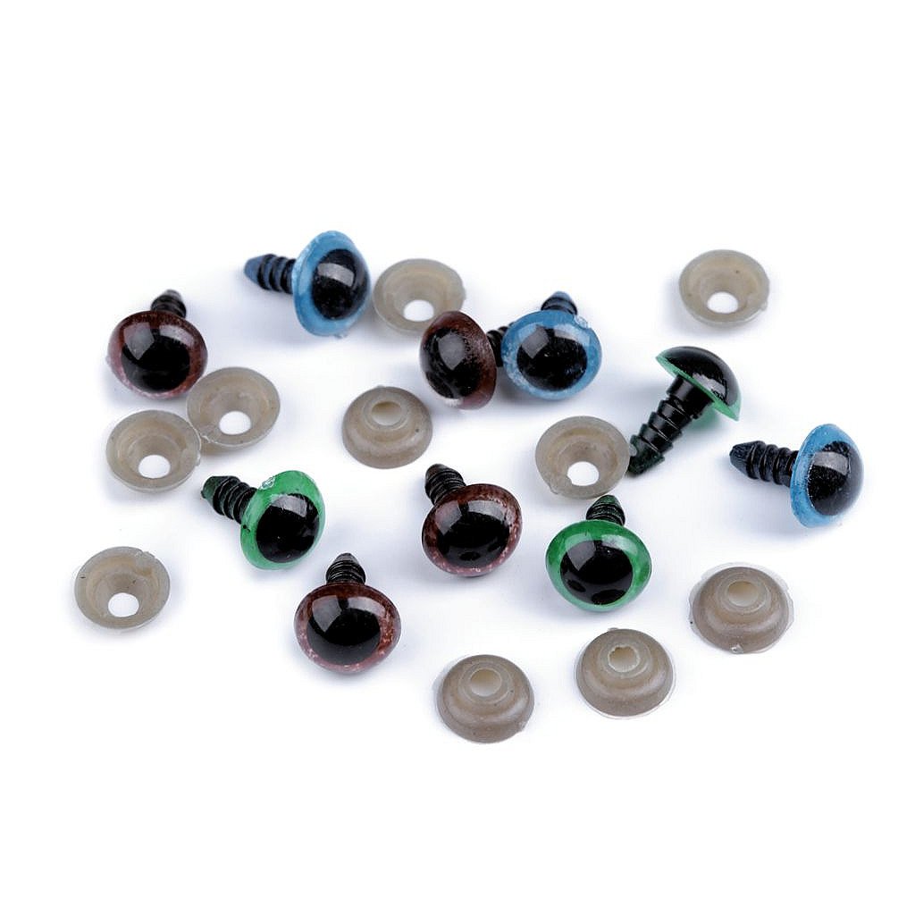 Polokulaté plastové oči využijete pro výrobu různých postaviček a zvířátek z textilu, např. plyšáků. Pro pevné přichycení mají oči na vrutu závity, které se pevně uchytí v textilu. Z druhé strany se nacvakne pojistka, která oči bezpečně připevní na místo.