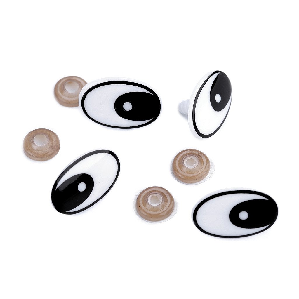 Bezpečnostní plastové oči s rošťáckým výrazem využijete pro výrobu různých zvířátek a postaviček, např. plyšáků. Pro pevné přichycení mají oči na vrutu závity, které se pevně uchytí v materiálu používaném při výrobě plyšáků. Z druhé strany se nacvakne pojistka, která oči bezpečně zachytí na místo.