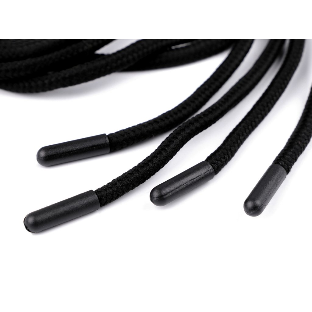 Kulatá oděvní šňůra je měkká, krásně poddajná. Na obou stranách má plastovou koncovku s kulatým zakončením. Délka koncovek je 2 cm.