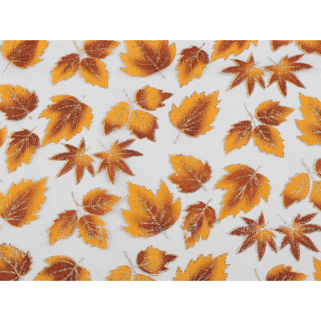 Organza s podzimními listy je vhodná k dekoračním účelům. Zdobí ji třpytivé glitry. Využijete ji k aranžování, ozdobení stolu, k výrobě karnevalových kostýmů nebo dekoračních postaviček (skřítků, lesních víl apod.).