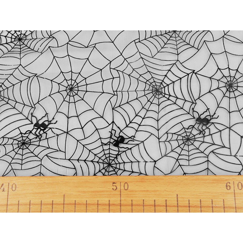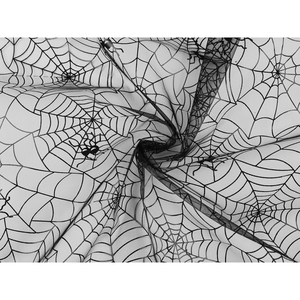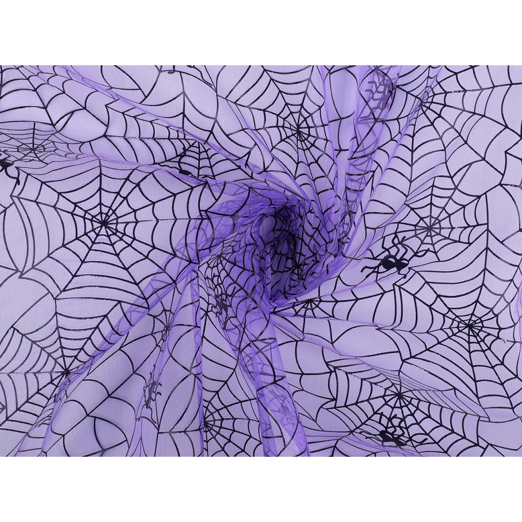 Organza s potiskem pavučiny je vhodná k dekoračním účelům. Využijete ji k aranžování, ozdobení halloweenského stolu, k výrobě karnevalových kostýmů nebo dekoračních postaviček (čarodějnic, ježibab, skřetů apod.).
