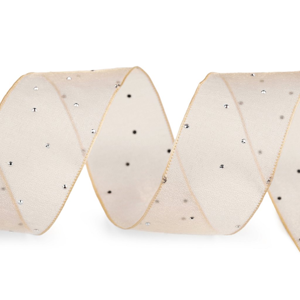 Organzová stuha s broušenými kamínky šíře 38 mm