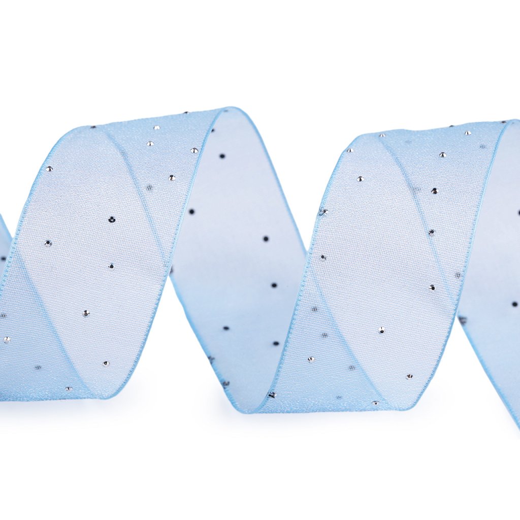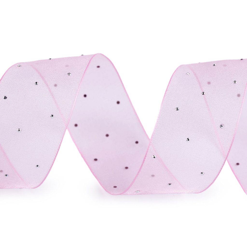 Organzovou stuhu zdobí drobné broušené kamínky, které se efektně třpytí. Je jemná, ale pěkně drží tvar.