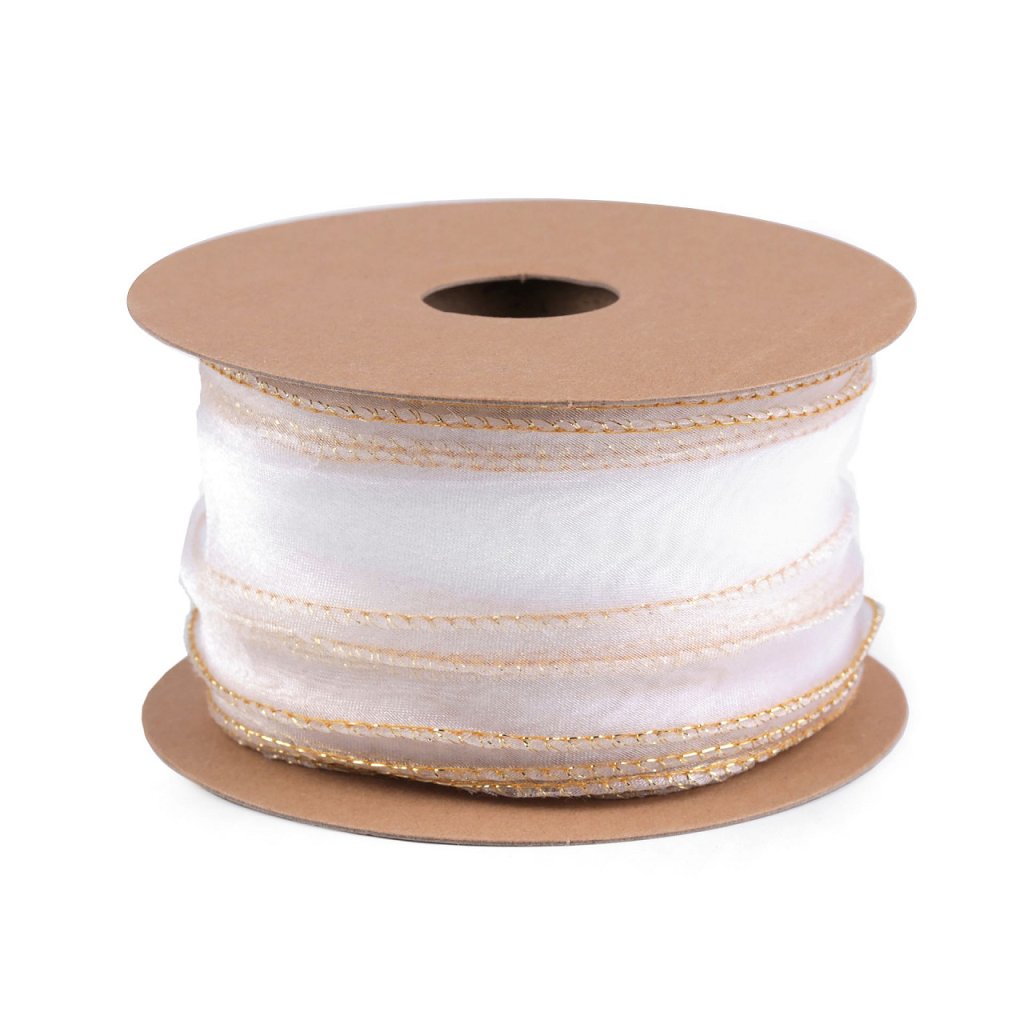 Široká organzová stuha má jemný perleťový lesk. Po stranách je pevná, obšitá třpytivým lurexem. Jemně se vlní, vypadá velice elgantně.