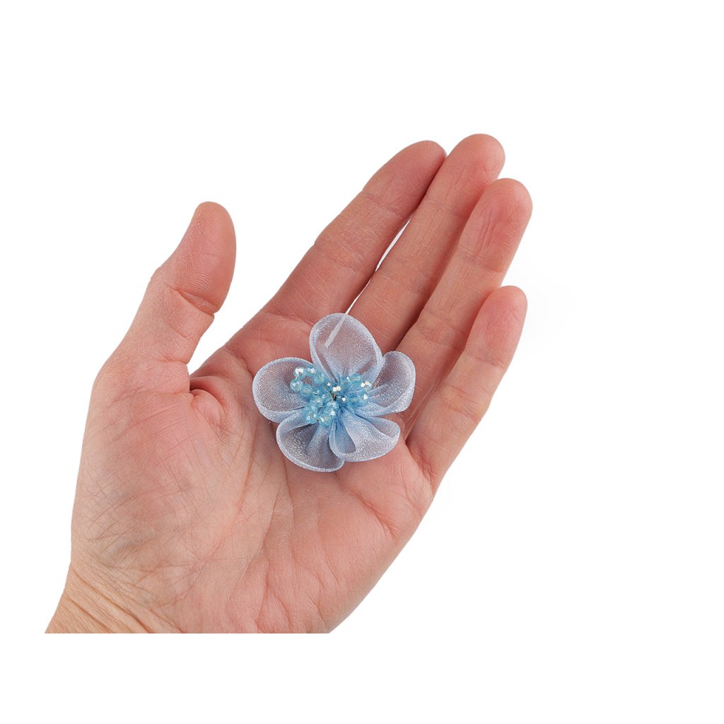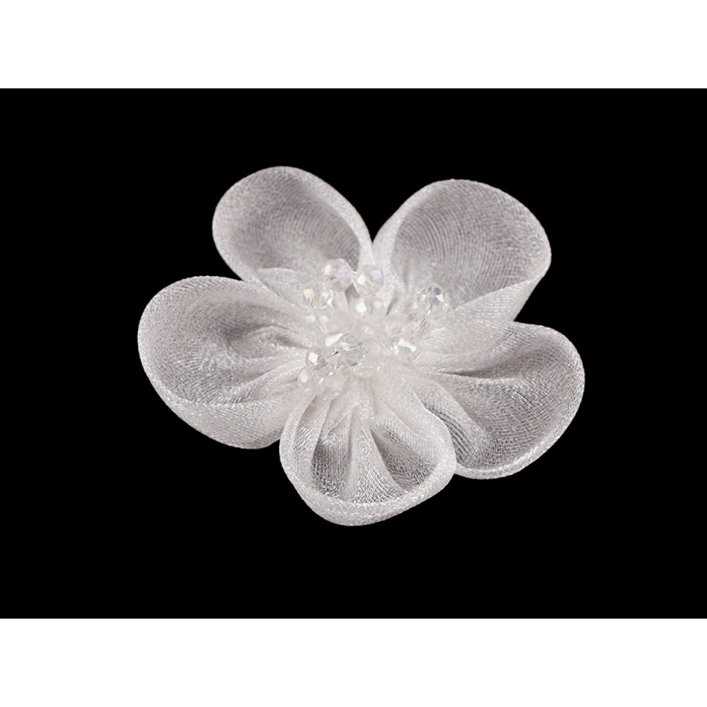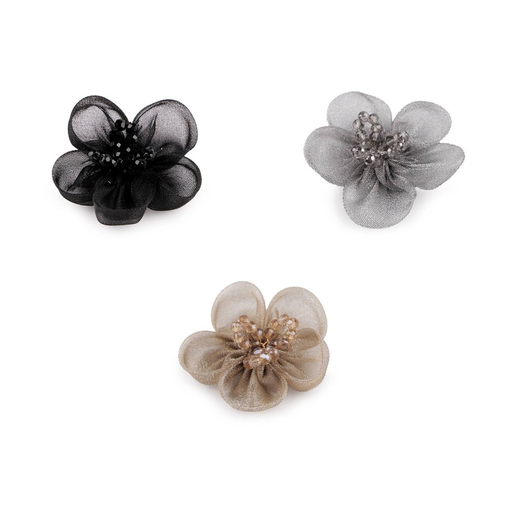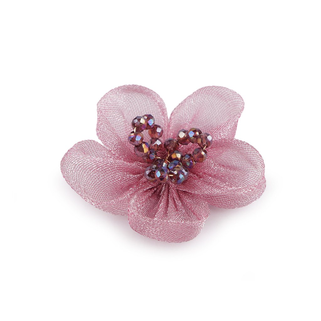 Organzový květ s broušenými korálky k našití a nalepení Ø4,5 cm