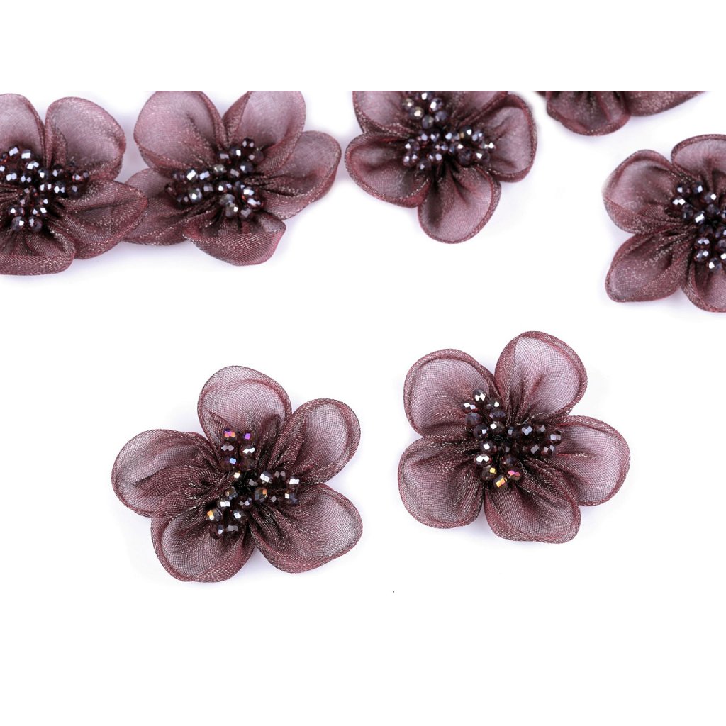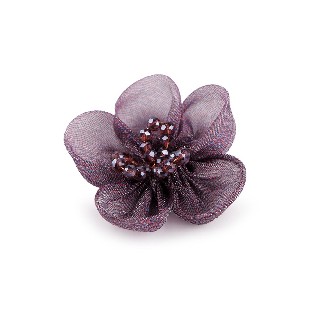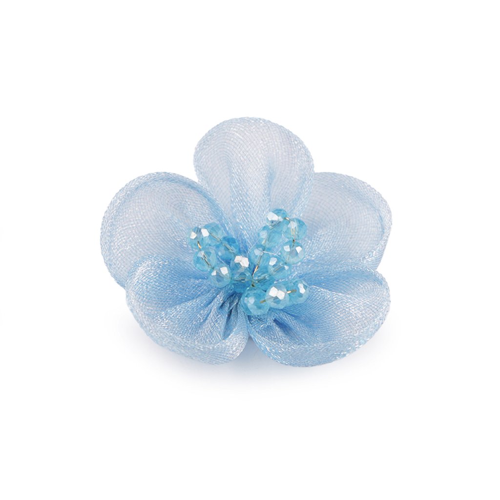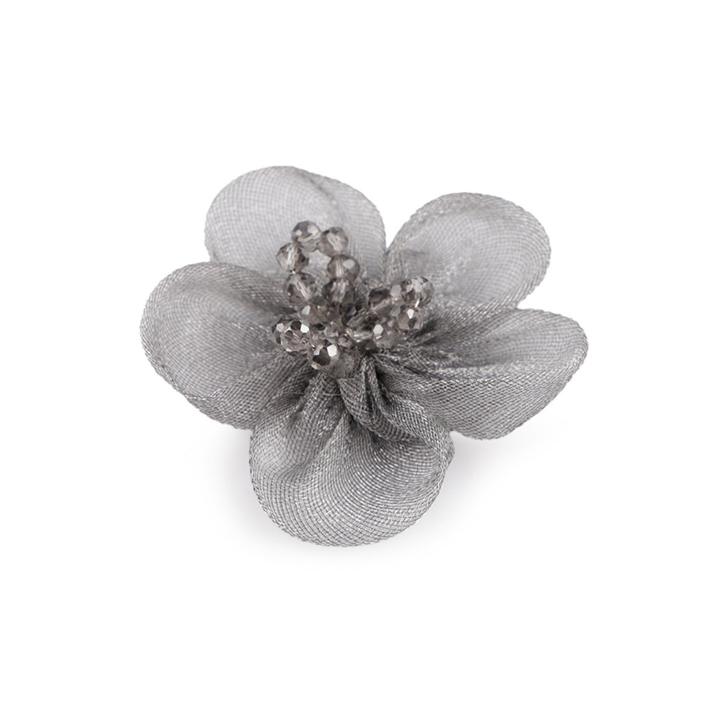 Organzový květ s broušenými korálky k našití a nalepení Ø4,5 cm