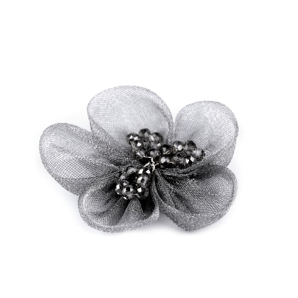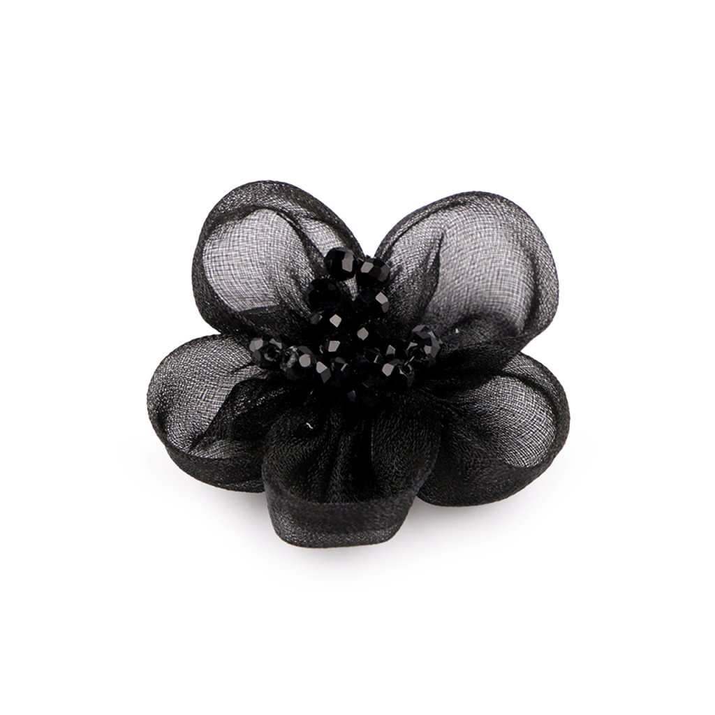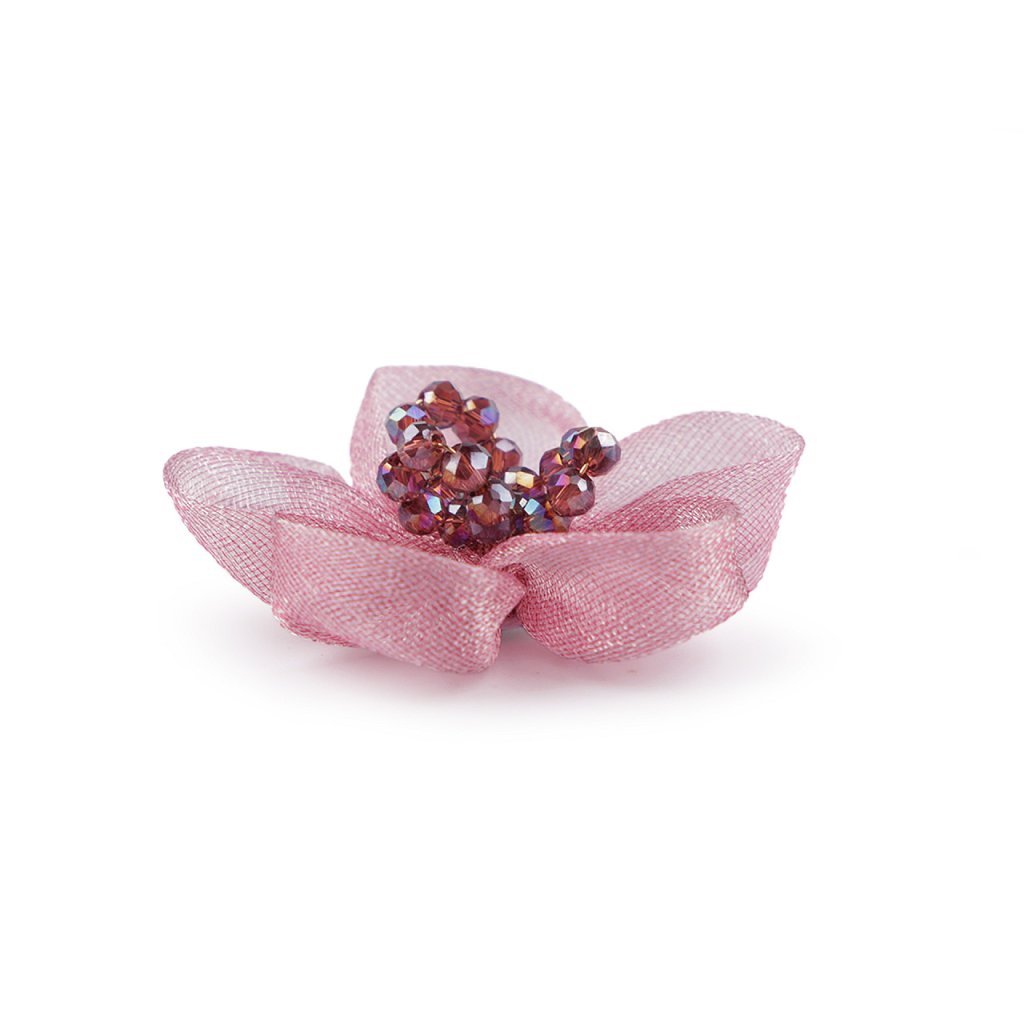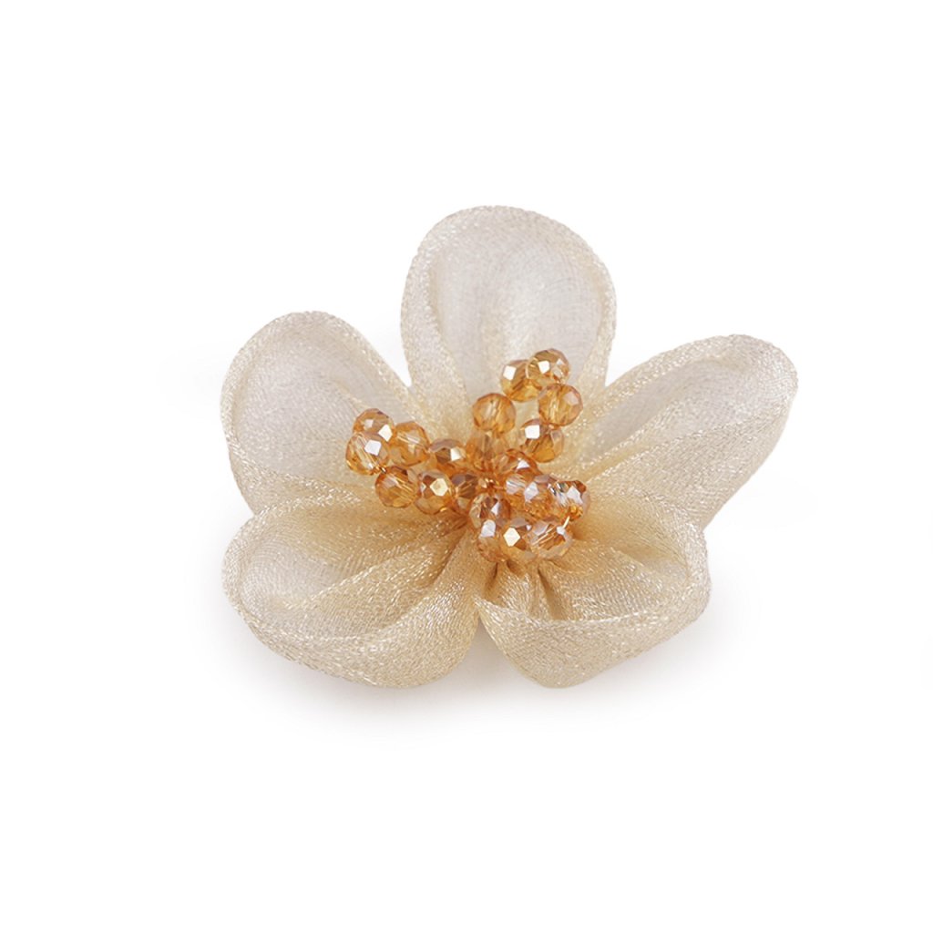 Organzový květ s broušenými korálky k našití a nalepení Ø4,5 cm