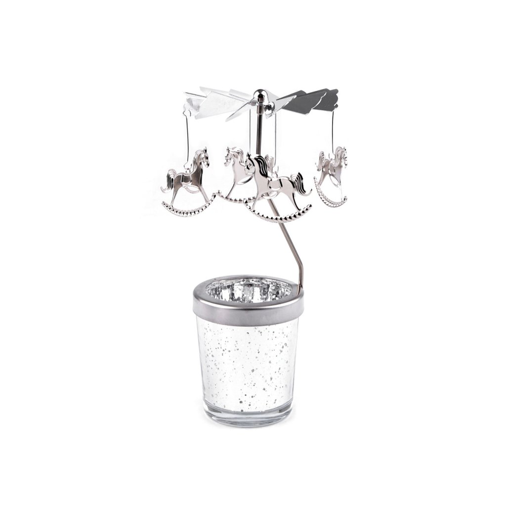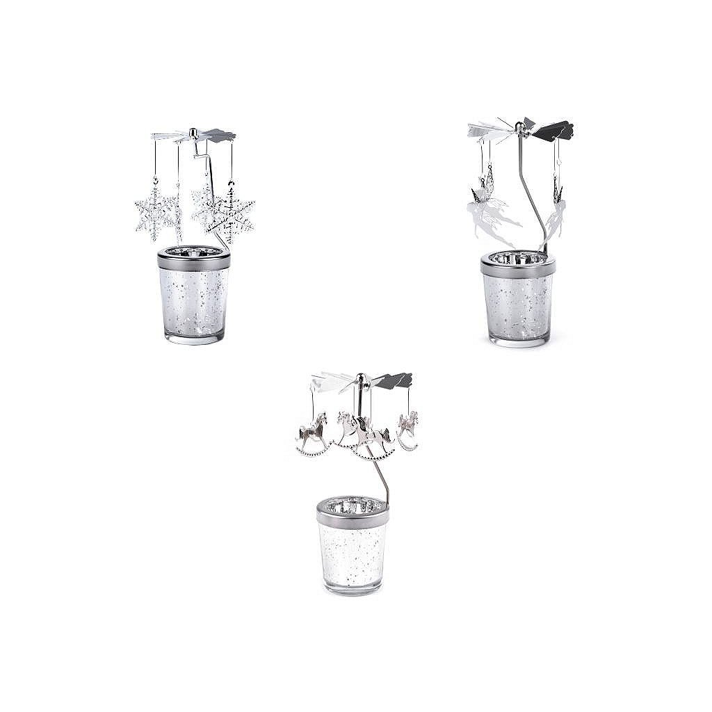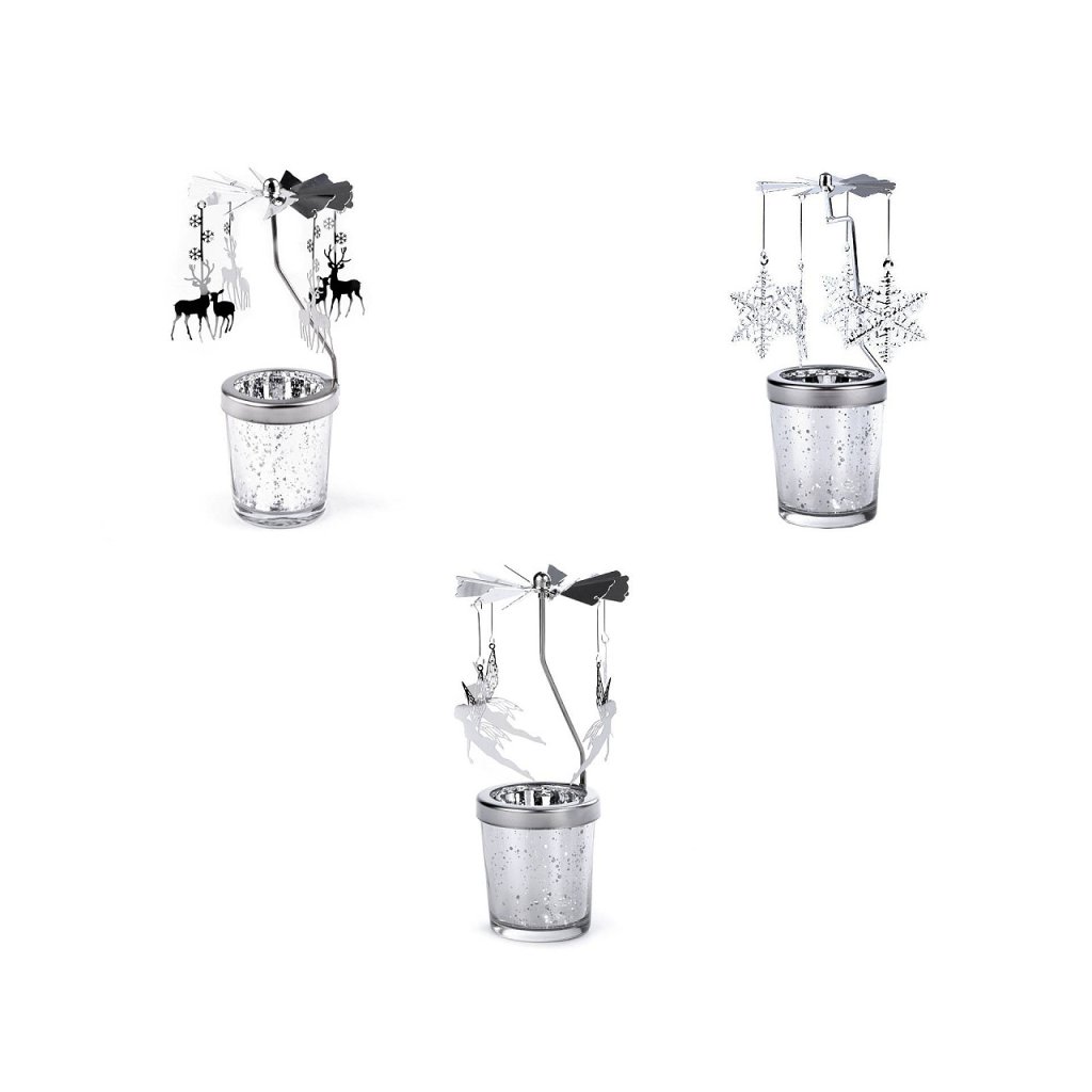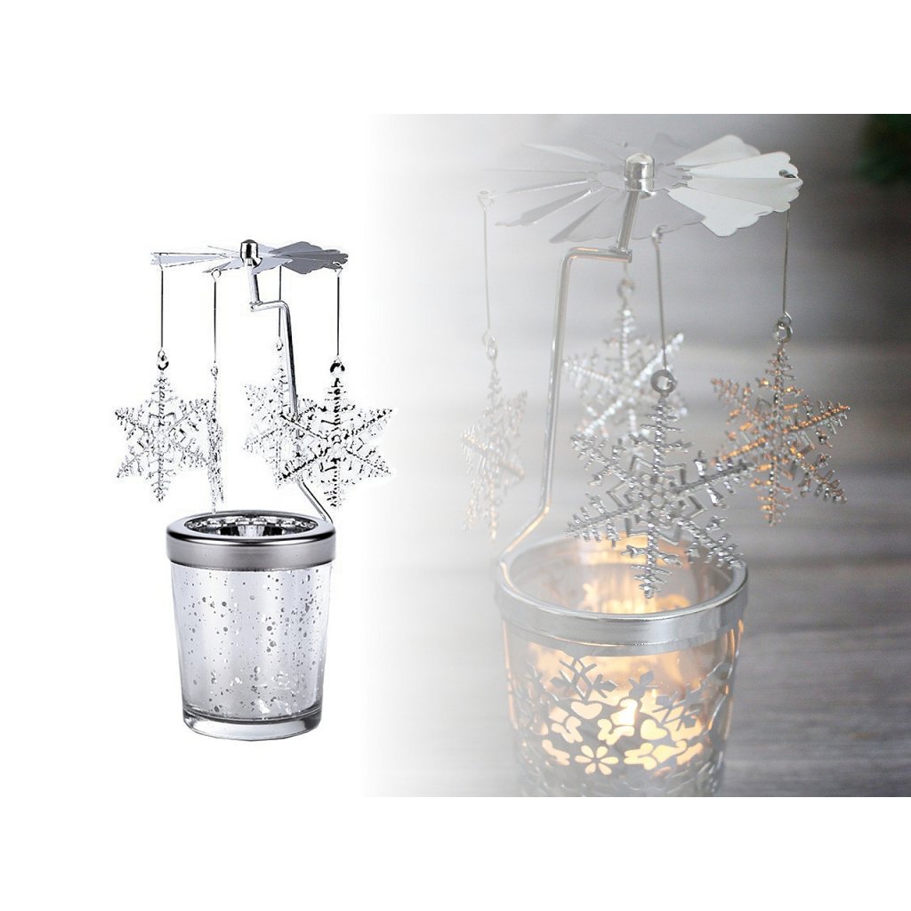 Vánoční kolotoč je příjemnou dekorací v období zimy. Vložte do něj zapálenou čajovou svíčku (není součástí balení) a ozdoby na kolotoči se roztočí (necinkají).