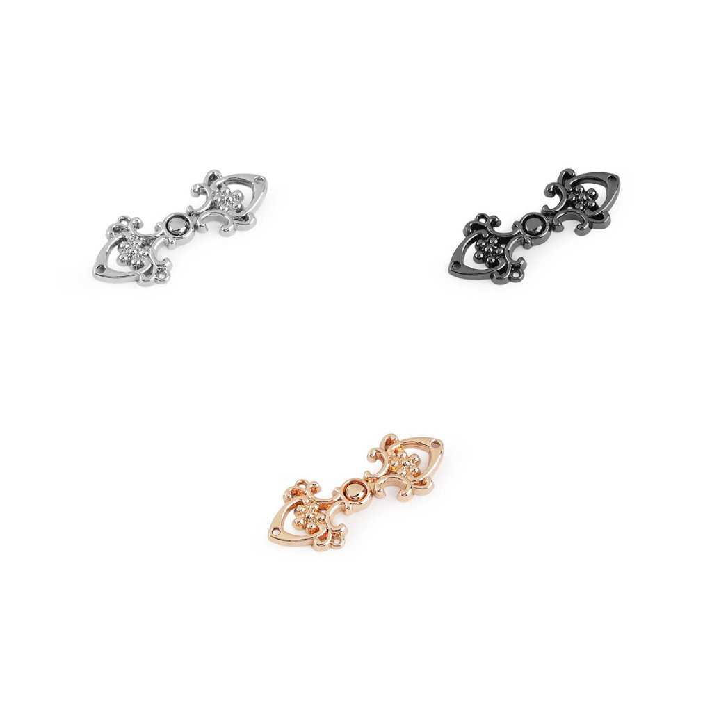 Ozdobné filigránové zapínání se skládá ze dvou částí, které do sebe provlečete a zacvaknete. Vynikne na oděvech i doplňcích. K materiálu se přišívá.