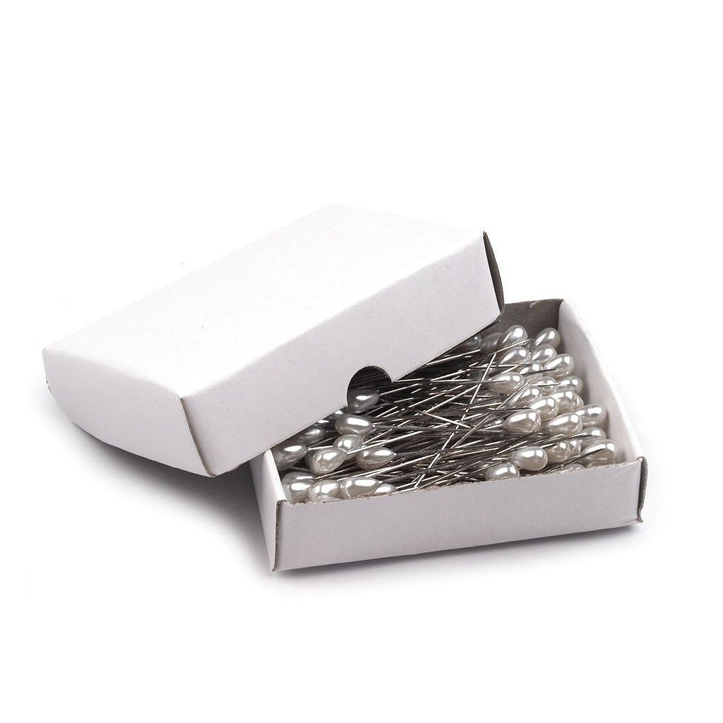 Dekorační špendlík má perleťovou hlavičku ve tvaru kapky. Kloboukový špendlík slouží jako ozdoba k upevnění dekorace např. do aranžmá živých květů, na slavnostní tabule, atd. Špendlík je pružný.