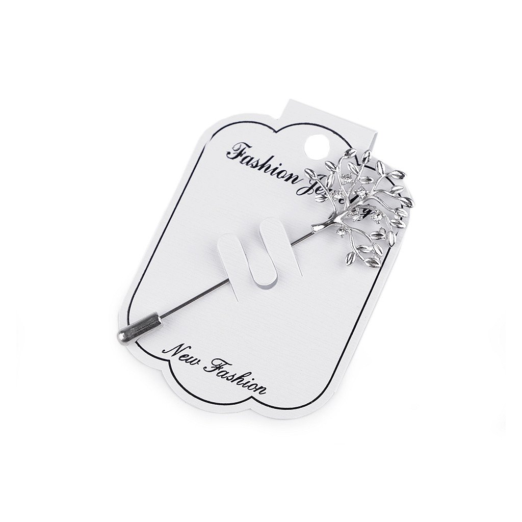Strom je zdobený drobnými broušenými kamínky, které se oslnivě třpytí. Špendlík má na konci chránič proti popíchání nebo vyvlečení. Je na kartě, kterou lze zavěsit na prodejní stojany.