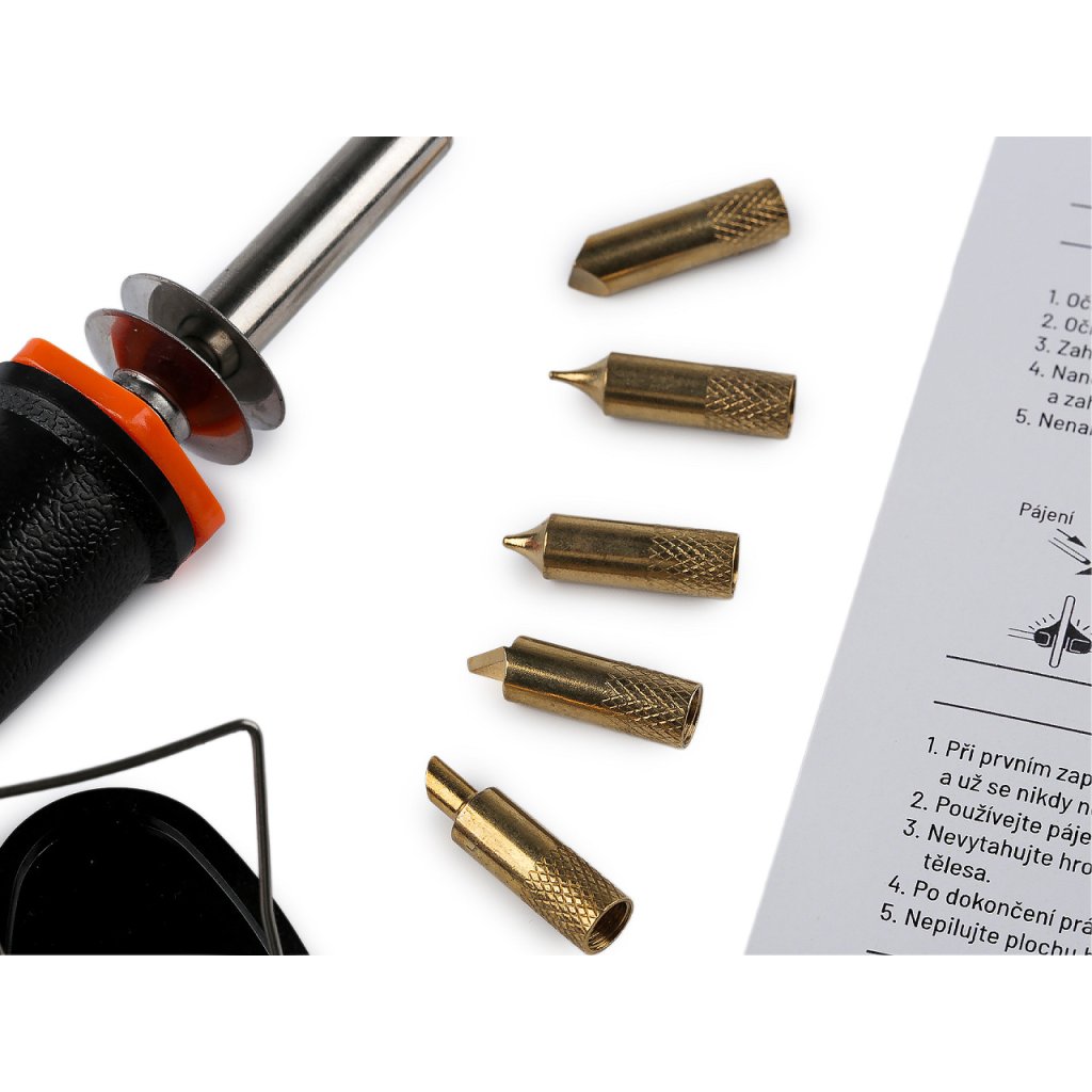 Součástí je 6 nástavců, z nichž 5 se na pájku přišroubovává.