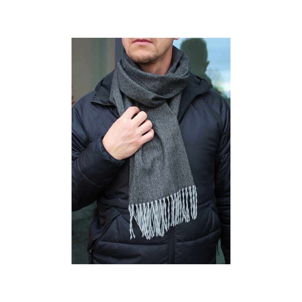 Pánská šála je velice kvalitní, komfortně zahřeje v sychravých dnech. Je vyrobená z materiálu příjemně hebkého na dotek. Oboustranný design s jemným barevným chevronovým vzorem umožňuje šálu nosit z obou stran. Hodí se ke kabátu, bundě i svetru, k formálním outfitům do práce i k ležérnějšímu stylu pro volný čas. Na koncích je zakončená dlouhými třásněmi. Bude perfektním dárkem pro muže, kteří si potrpí na styl a kvalitu.