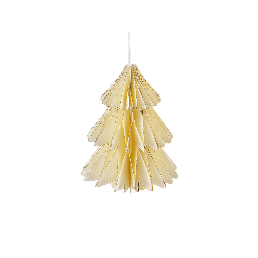 Závěsná dekorace ve tvaru stromečku je vyrobená z plástvového papíru a vytváří zajímavý 3D efekt. Díky poutku ho můžete pověsit na stromeček, větvičky ve váze nebo na věnce.