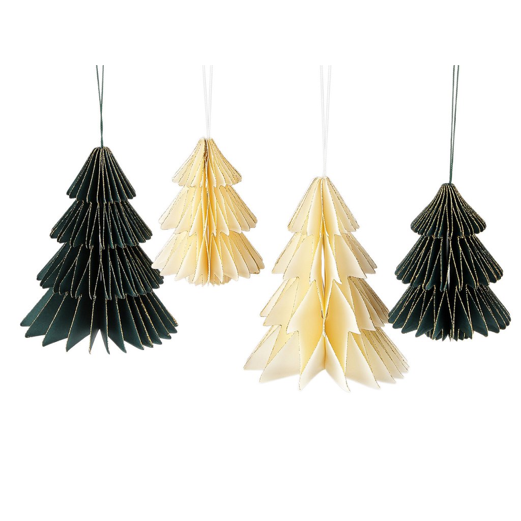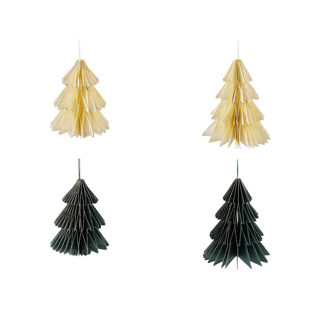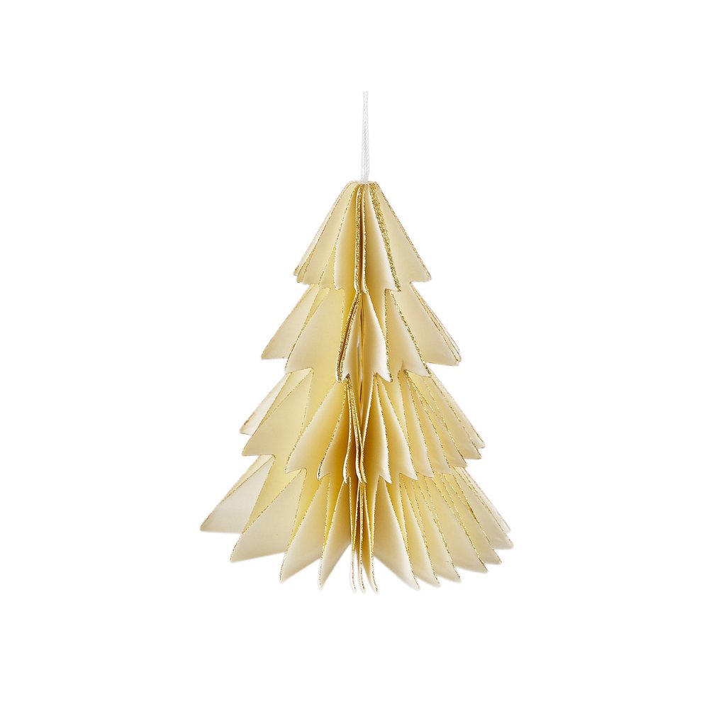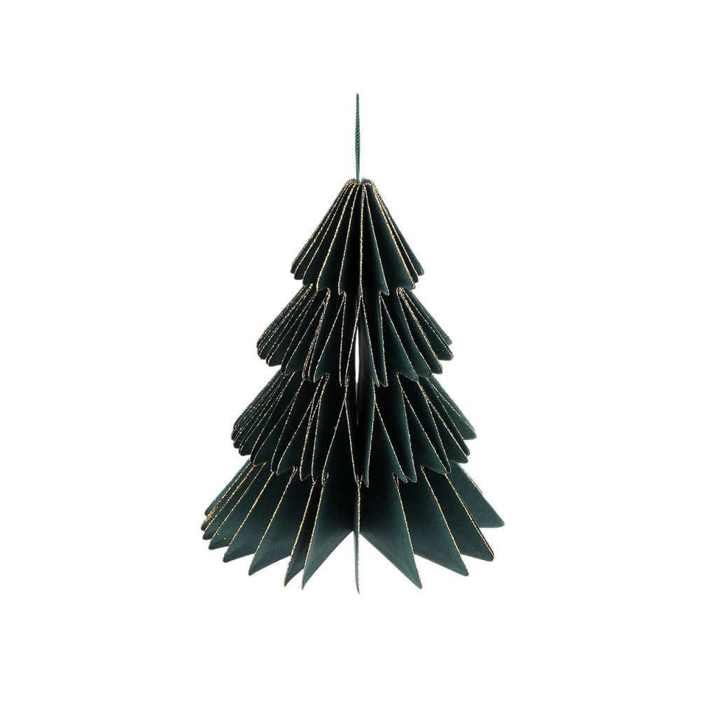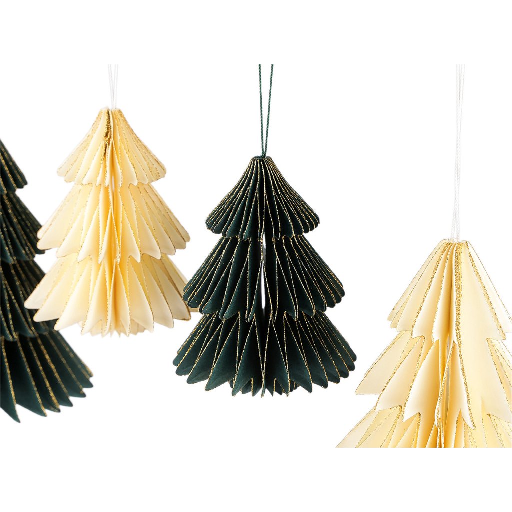 Závěsná dekorace ve tvaru stromečku je vyrobená z plástvového papíru a vytváří zajímavý 3D efekt. Díky poutku ho můžete pověsit na stromeček, větvičky ve váze nebo na věnce.