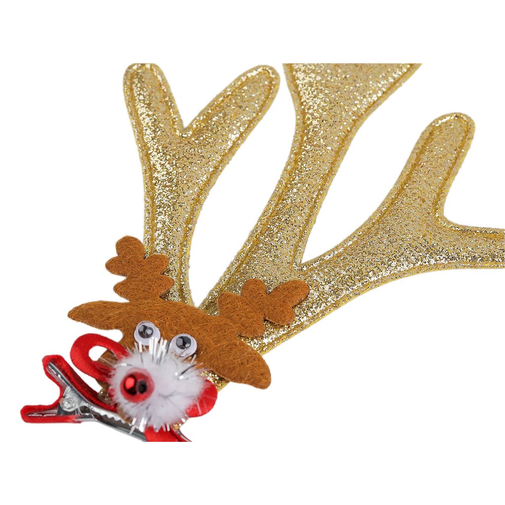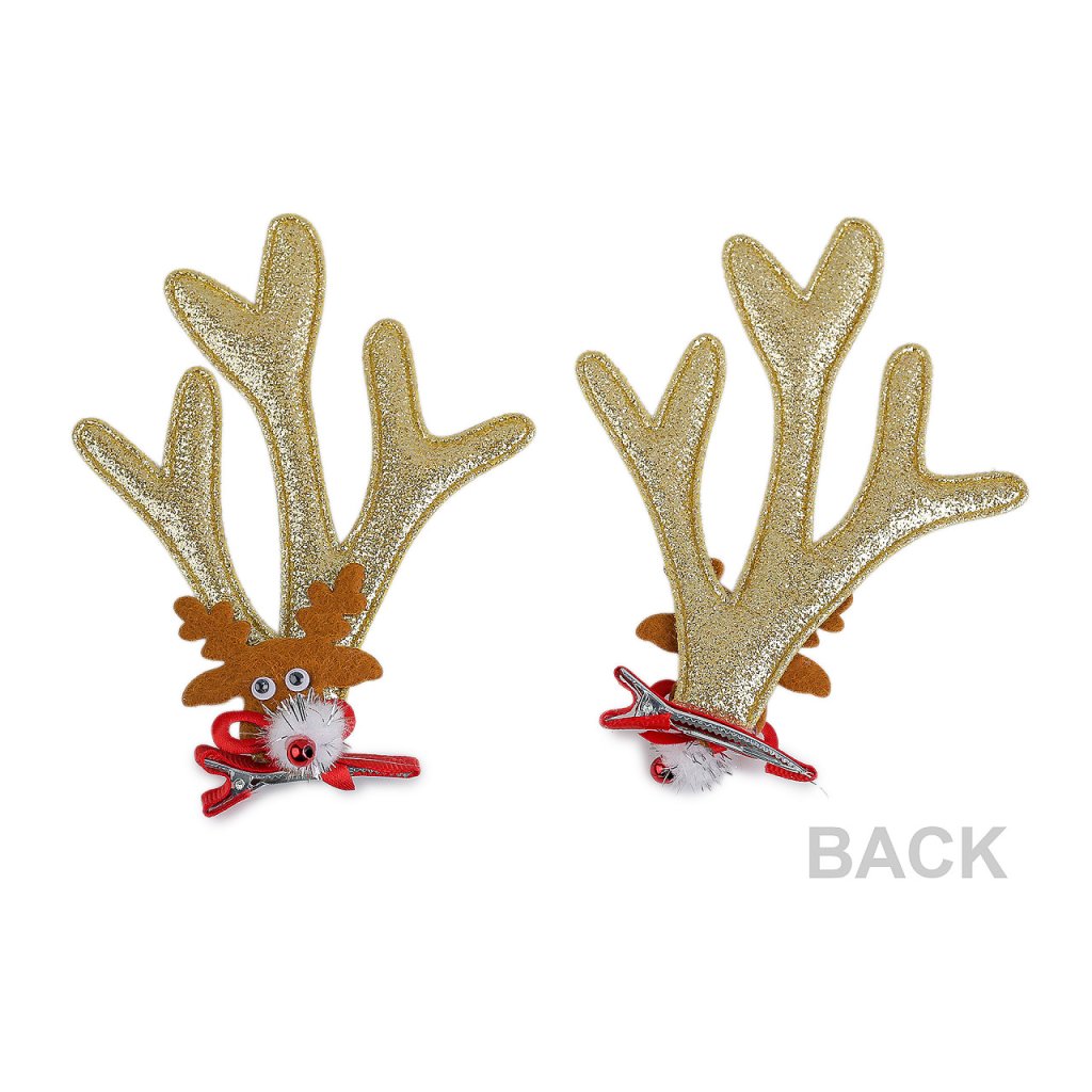 Sponky se sobíky potěší malé i velké slečny. Stanou se nepostradatelným doplňkem vánočních večírků a dalších zimních oslav. Na hlavě najdete pohyblivé plastové oči a zlaté třpytivé parůžky. Na čumáku je ozdoba z mašličky, lurexové bambulky a lesklého korálku. Spony mají zoubky, v účesu perfektně drží. Nemusí se nosit jen ve vlasech, můžete si je ozdobně připnout na tašku, jako zimní dekoraci apod.