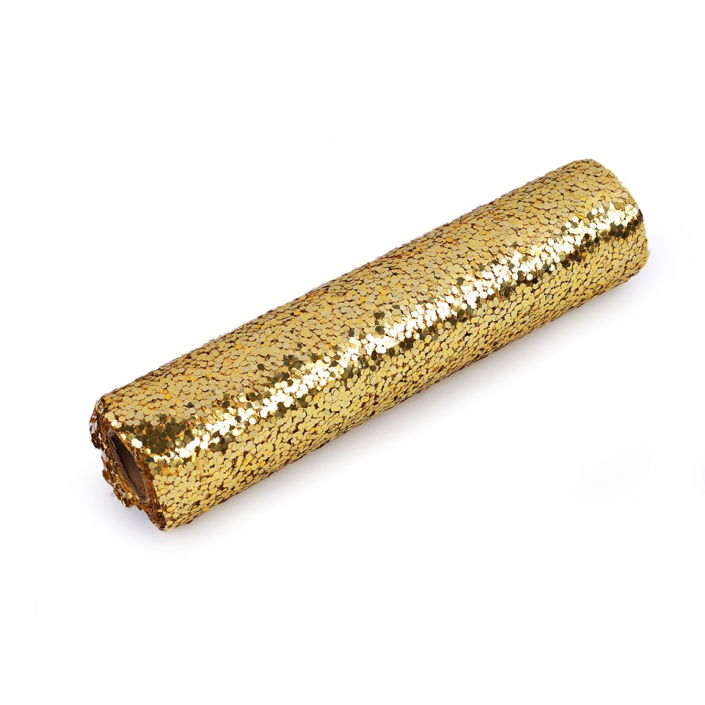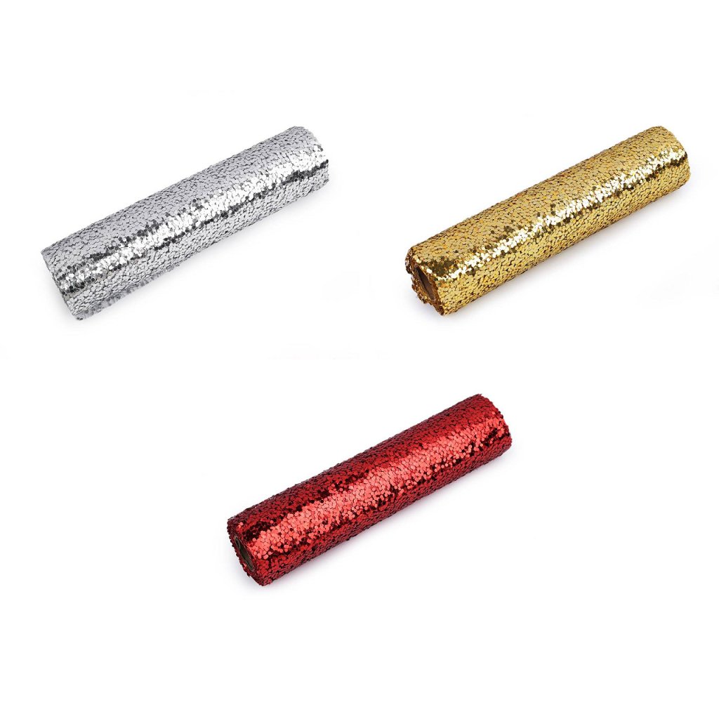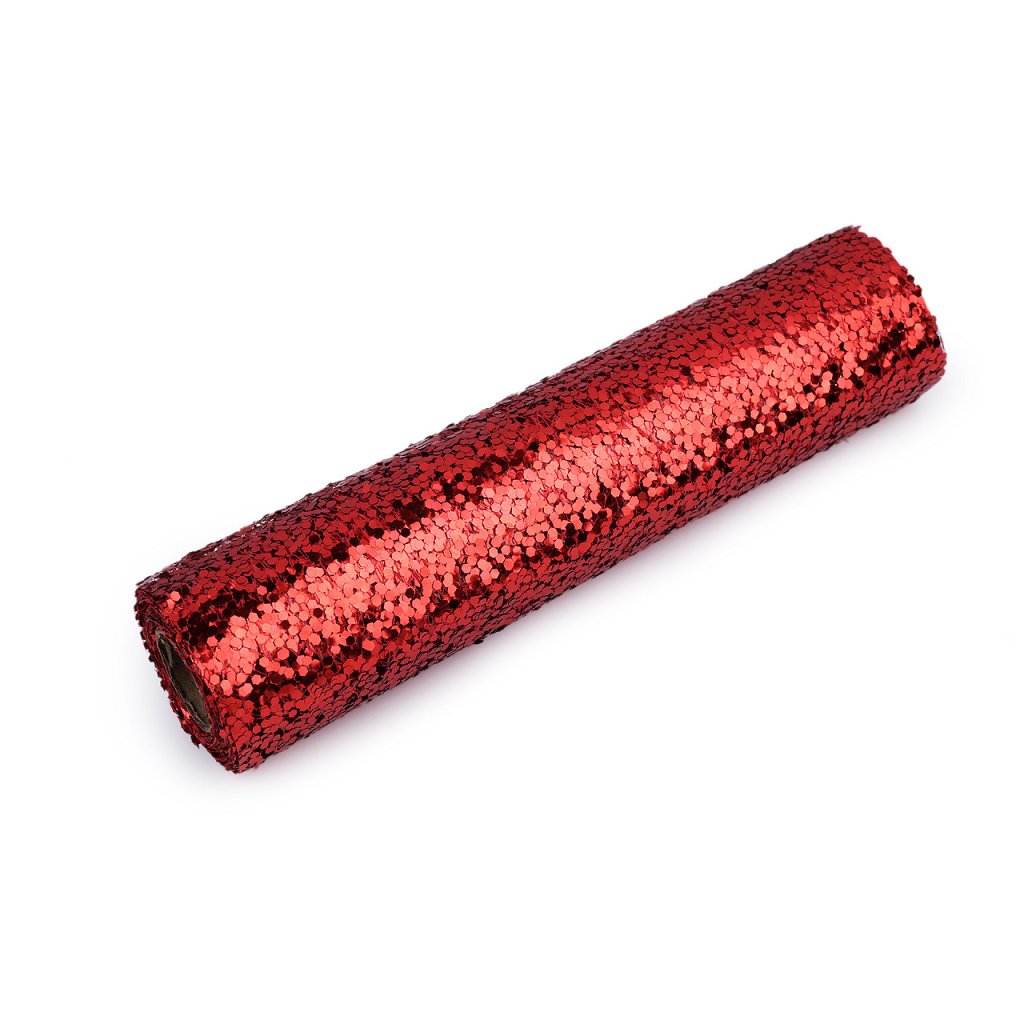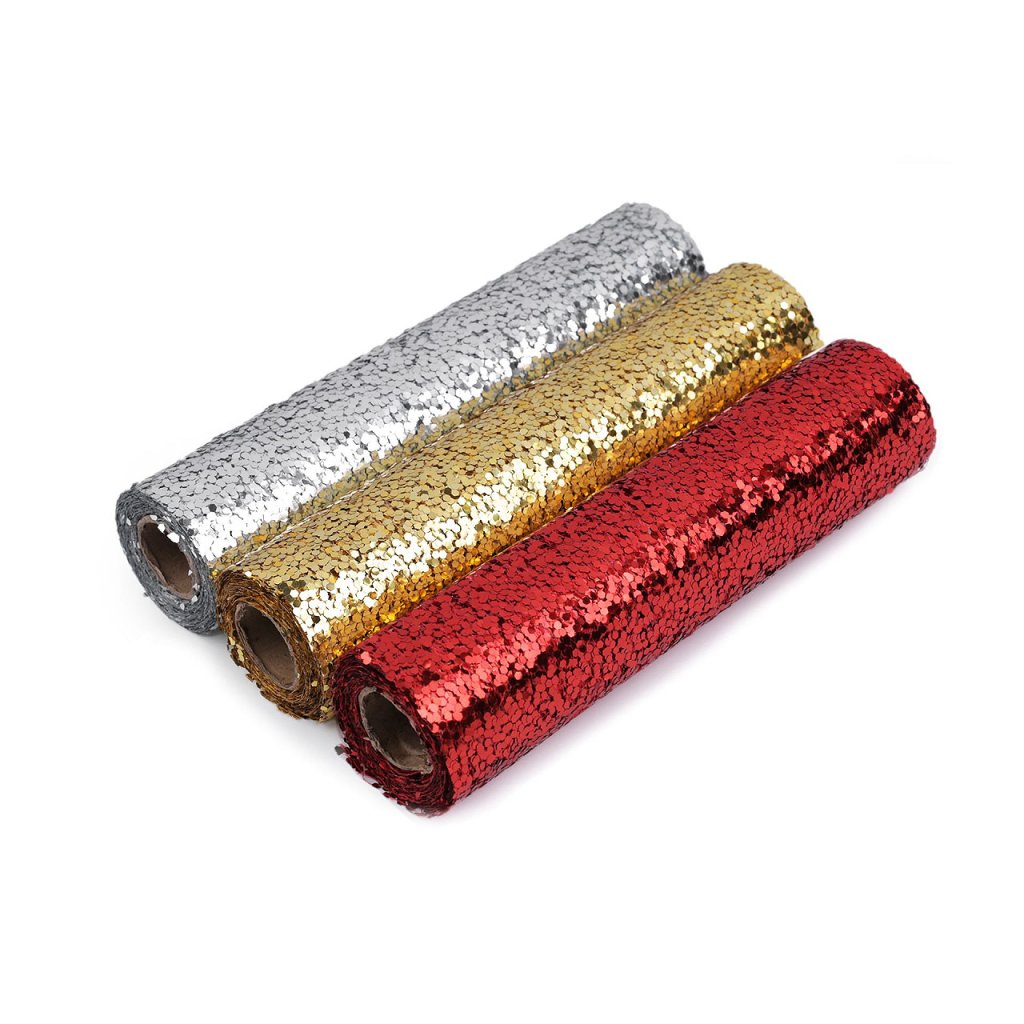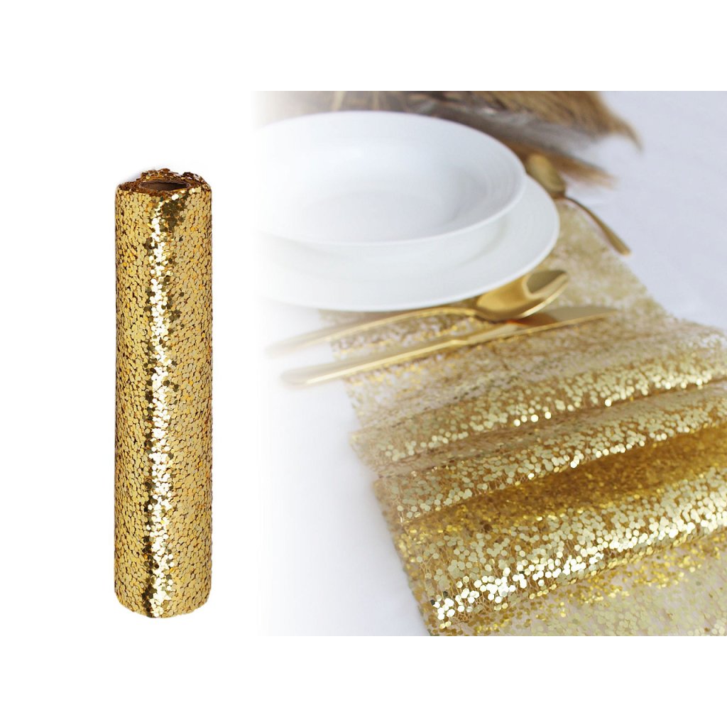 Textilie připomínající jemnou pavučinku je bohatě ozdobená velkými třpytivými glitry. Působí opravdu luxusním dojmem, vynikne na slavnostní tabuli na oslavách, večírcích a plesech.