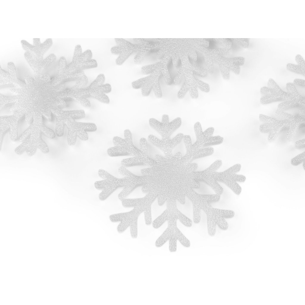 Pěnové vločky můžete pověsit jako dekoraci do oken, výloh obchodů a restaurací, ale také se dají lepit. Součástí balení jsou plastové splinty.