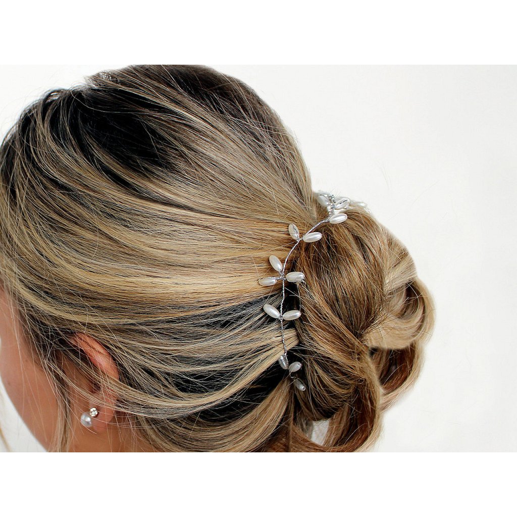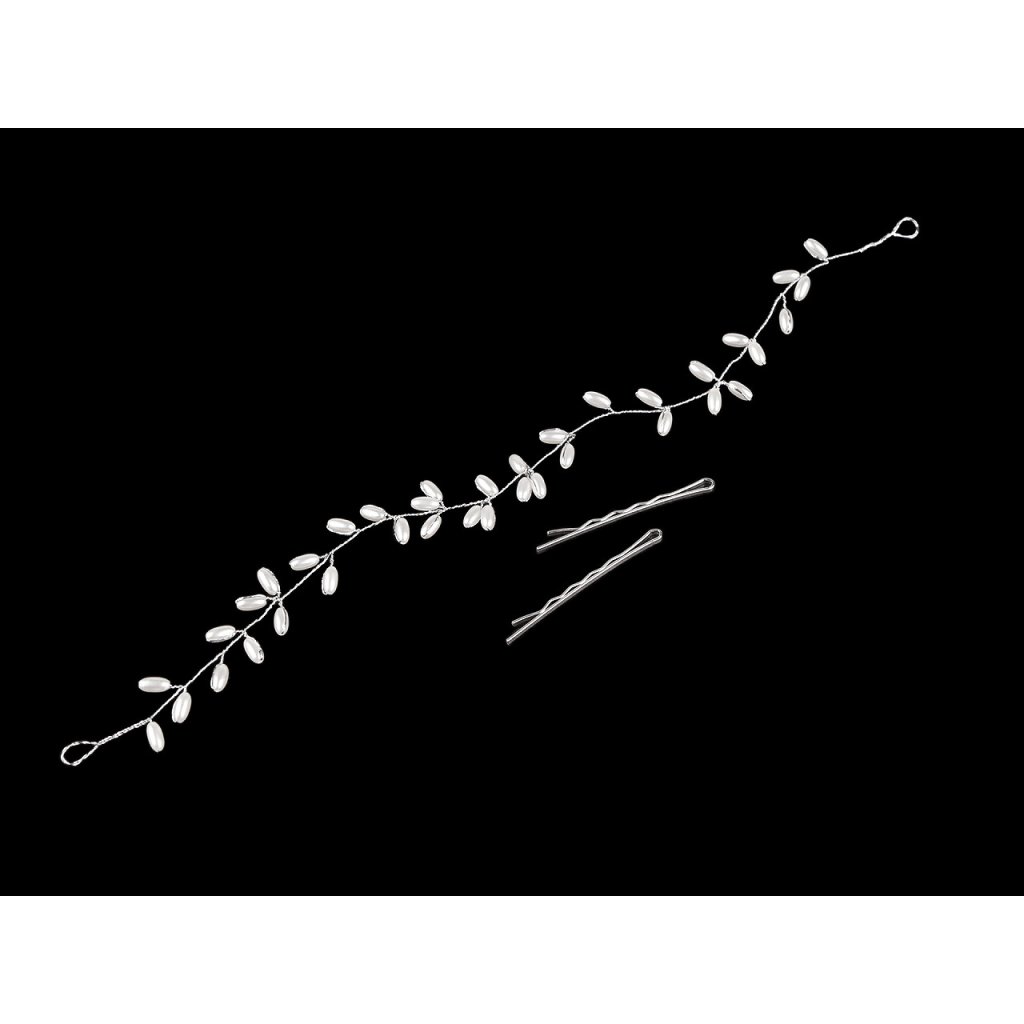 Romantická ozdoba s perlovými korálky bude jemným a elegantním doplňkem vašich vlasů. Je tvořená z dvou do sebe zapletených drátků, do kterých jsou vkomponované podlouhlé voskové korálky připomínající perly. Díky drátkům je ozdoba lehce ohybatelná a lze ji prostorově tvarovat. Čelenku využijete jako nevšední doplněk na svatby, svaté přijímání či na plesy.