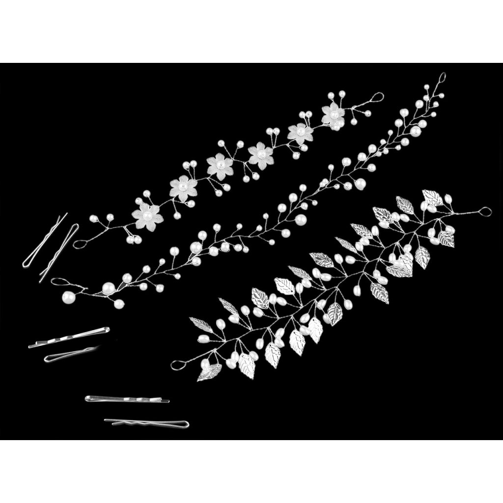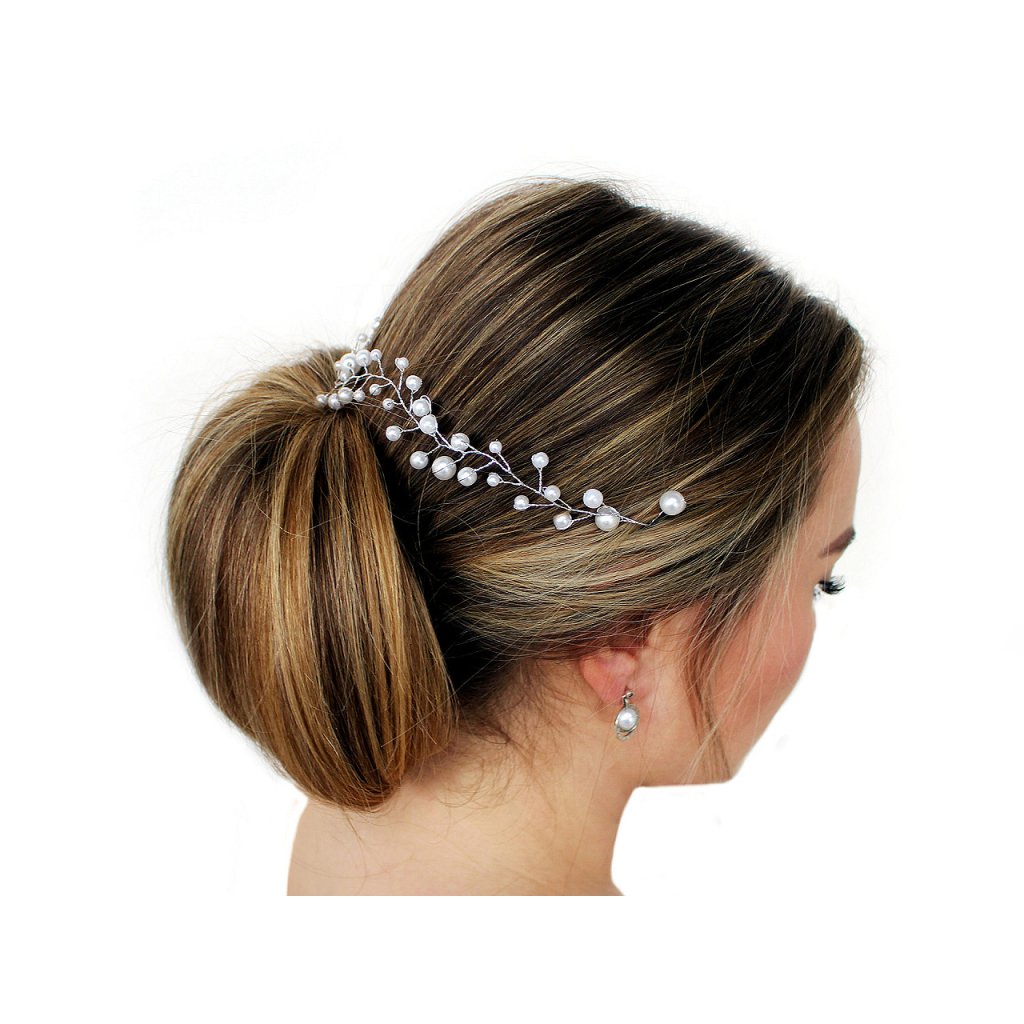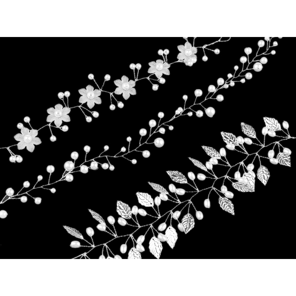 Romantická ozdoba s perlovými korálky bude jemným a elegantním doplňkem vašich vlasů. Je tvořená z dvou do sebe zapletených drátků, do kterých jsou vkomponované voskové korálky připomínající perly a další ozdoby.