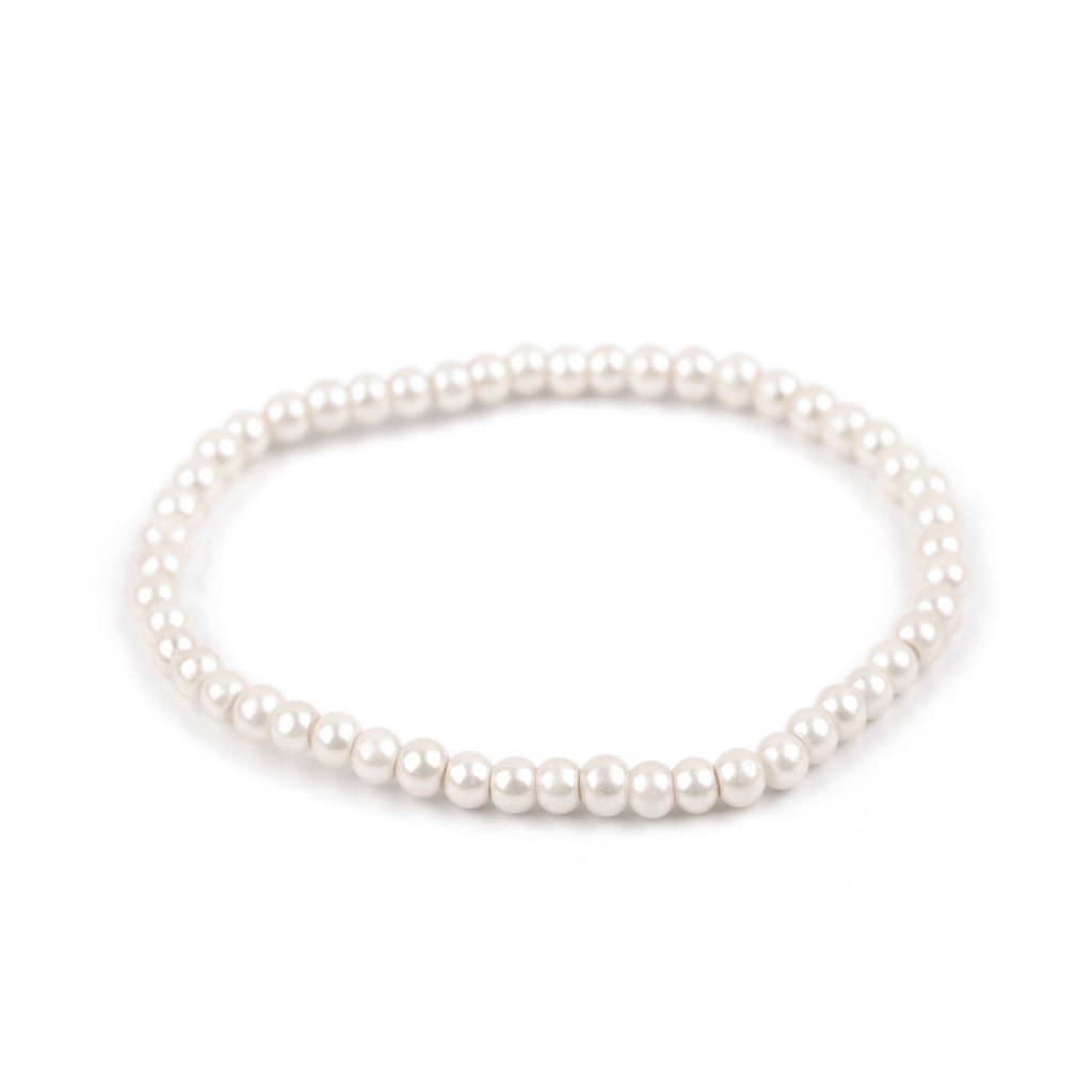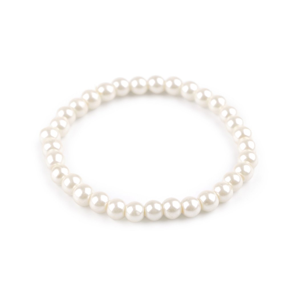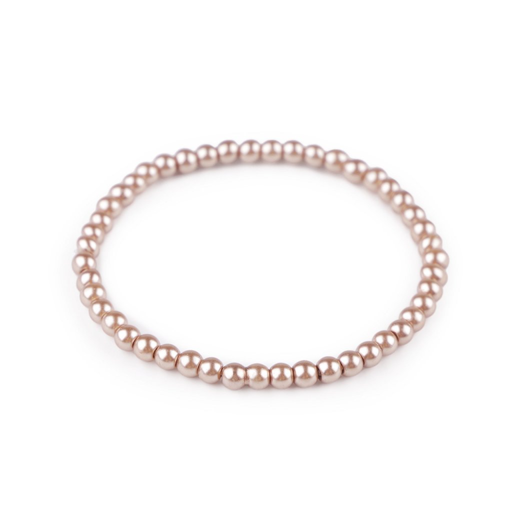 Elegantní náramek z voskovaných perel se efektně leskne. Perly jsou navlečené na pružence, proto se náramek snadno natáhne na ruku. Má univerzální velikost.