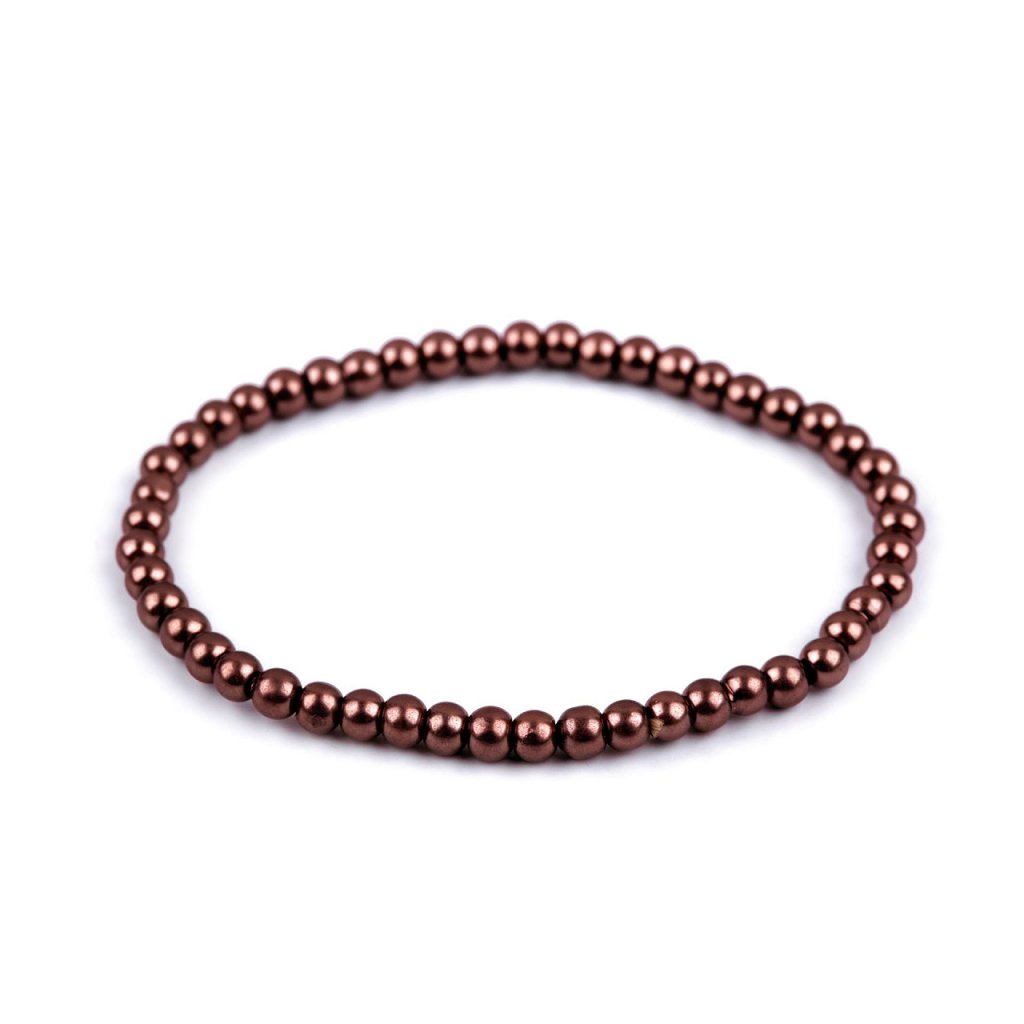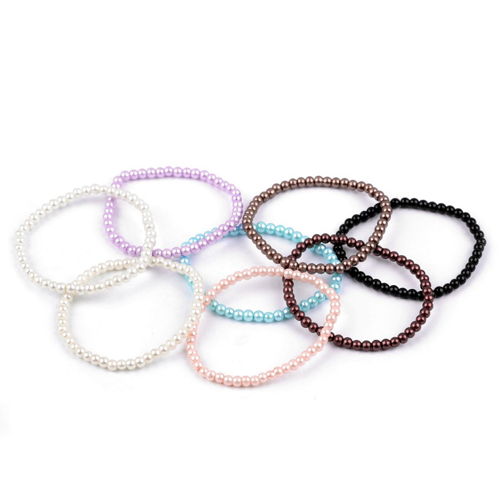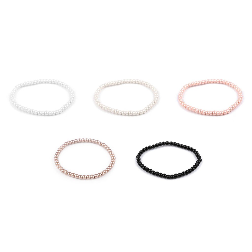 Elegantní náramek z voskovaných perel se efektně leskne. Perly jsou navlečené na pružence, proto se náramek snadno natáhne na ruku. Má univerzální velikost.