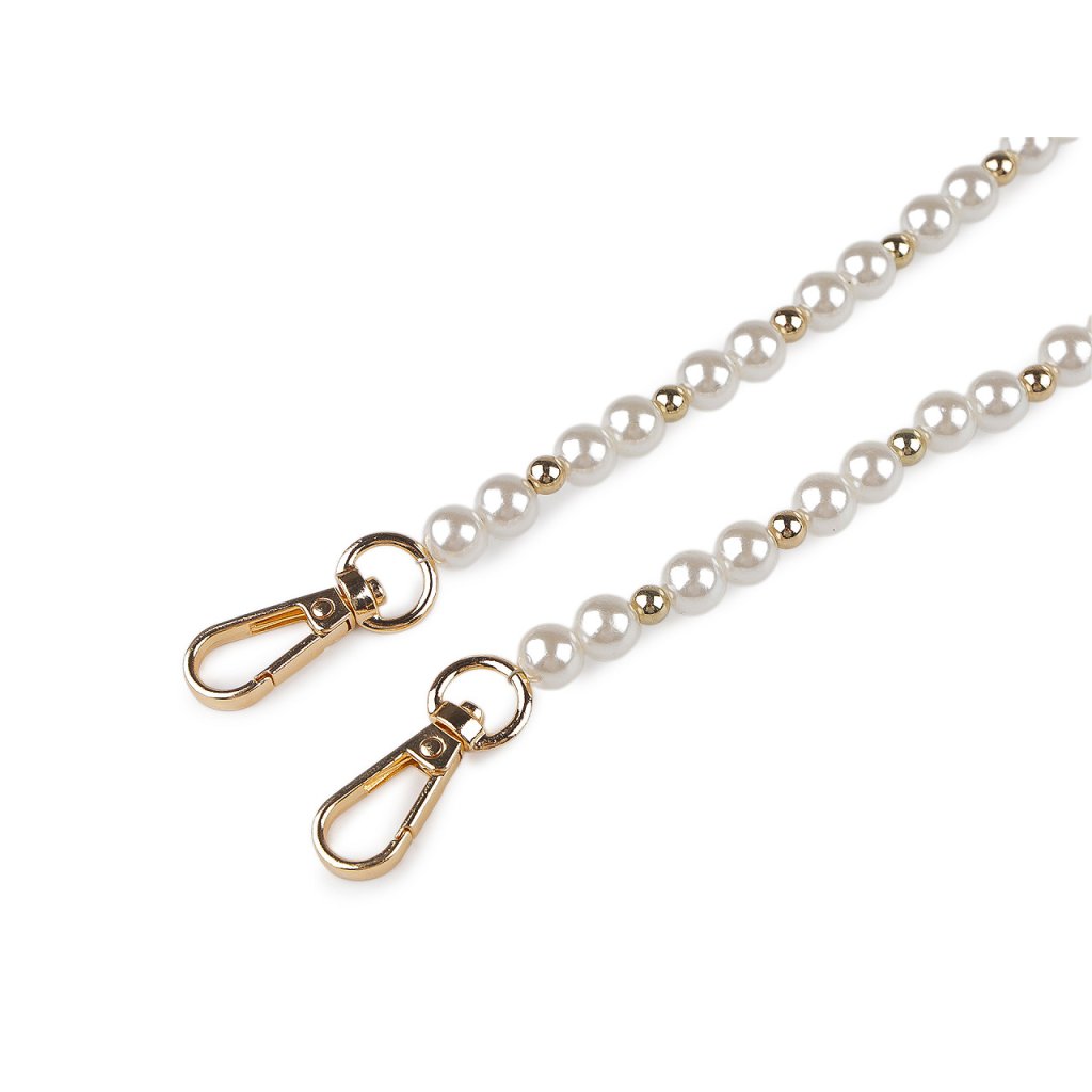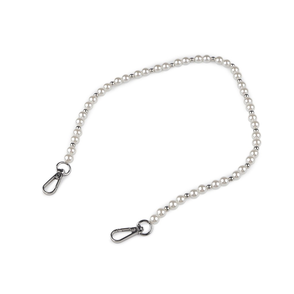 Perlový řetízek je elegantní a stylový doplněk pro každodenní nošení i speciální příležitosti. Skvěle doplní psaníčka, menší kabelky nebo pouzdra na mobilní telefony. Můžete ho snadno připevnit díky praktickým karabinám.