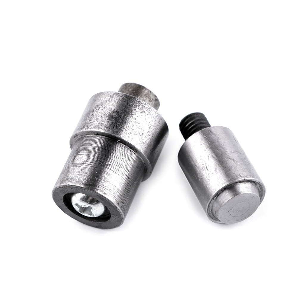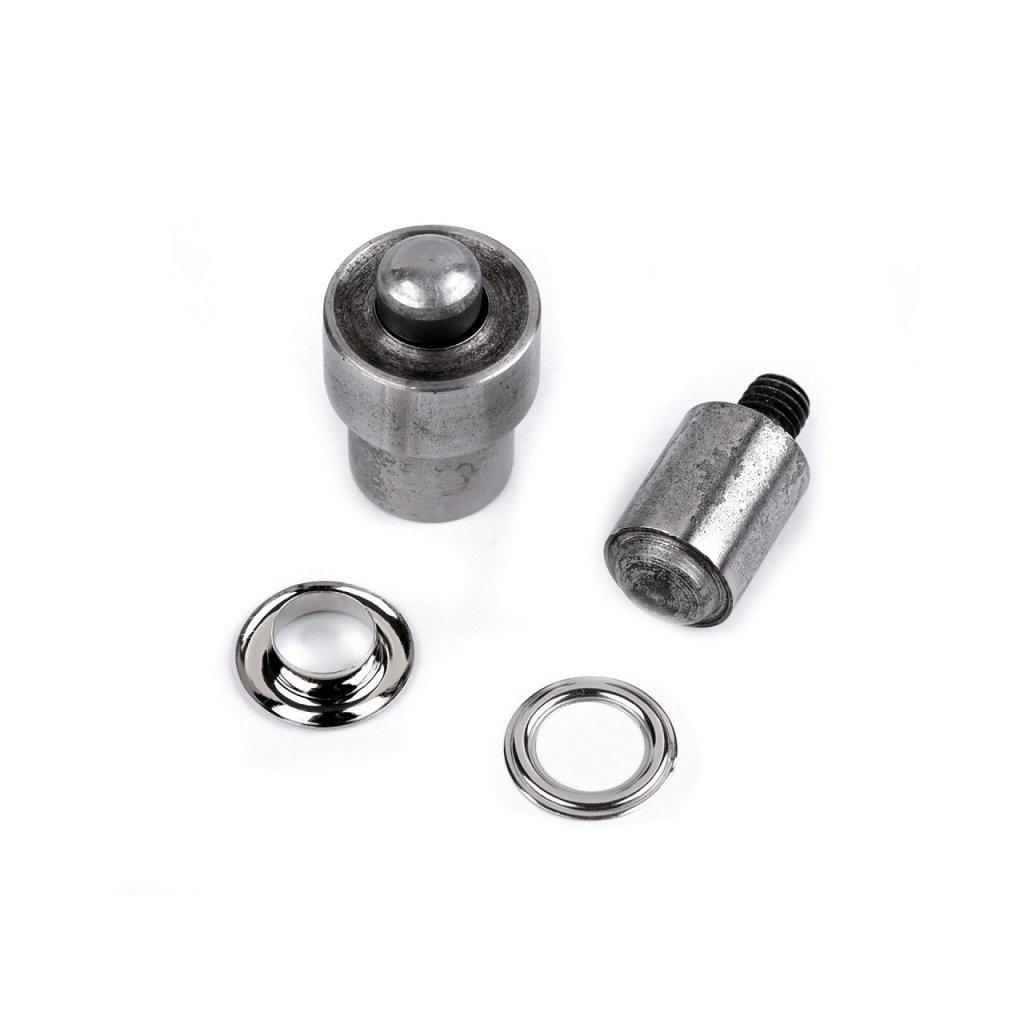 Kovový piston využijete k nýtování průchodek. Skládá ze dvou částí. Používá se tak, že větší část pistonu umístíme v dolní části lisu a vložíme látku s průchodkou Ø12 mm. Druhou část zašroubujeme do horní části lisu.