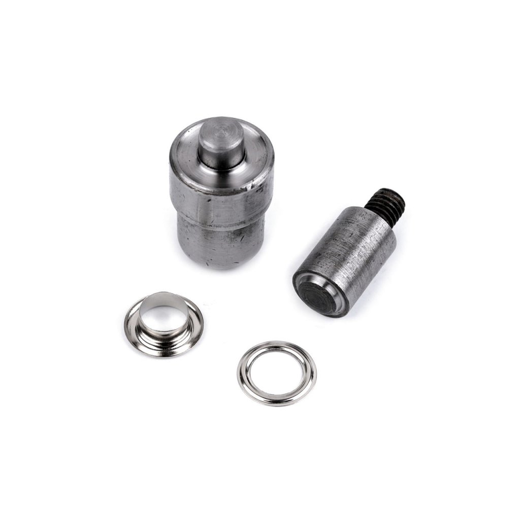 Kovový piston je určený k nýtování průchodek z kovu a se skládá ze dvou částí. Používá se tak, že větší část pistonu umístíme v dolní části lisu a vložíme látku s průchodkou Ø10 mm. Druhou část zašroubujeme do horní části lisu.