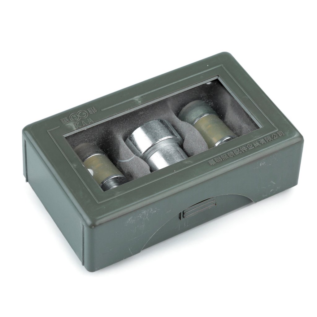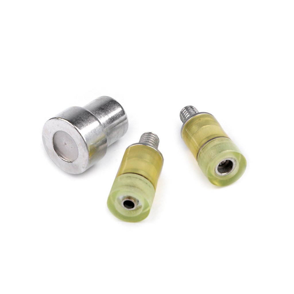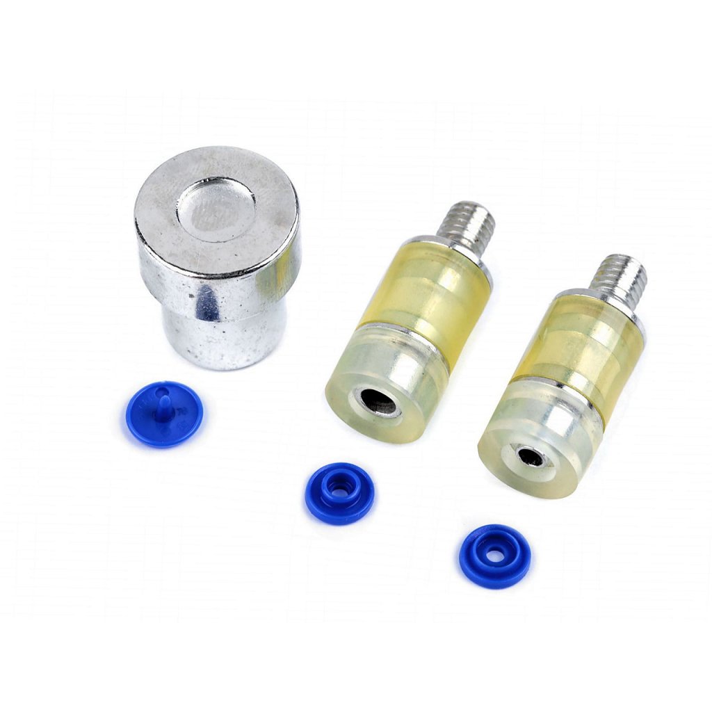 Sada pistonů je určená k nýtování plastových patentek, které najdete pod kódy 080646, 080647, 080648, 890160. Používá se tak, že větší část pistonu umístíme v dolní části lisu a vložíme látku s patentkou. Druhou část zašroubujeme do horní části lisu.