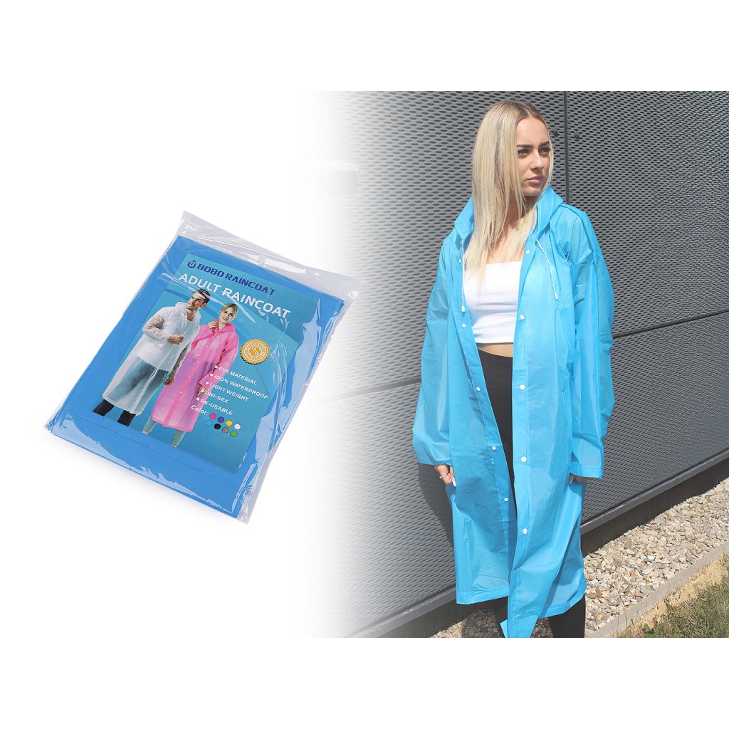 Pláštěnku využijete kdekoli, kde vás přepadne déšť. Je vyrobená z pevného materiálu, kapuce má stahovací šňůrku. Pláštěnka se zapíná na druky, je vložená do plochého sáčku.