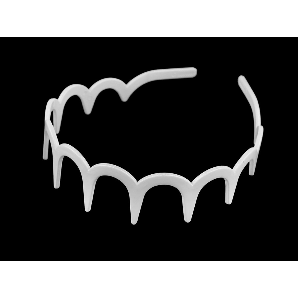 Plastová čelenka s obloučky a velkými zuby má lesklý a hladký povrch. Je vyrobená z kvalitního plastu, velmi dobře ve vlasech drží.