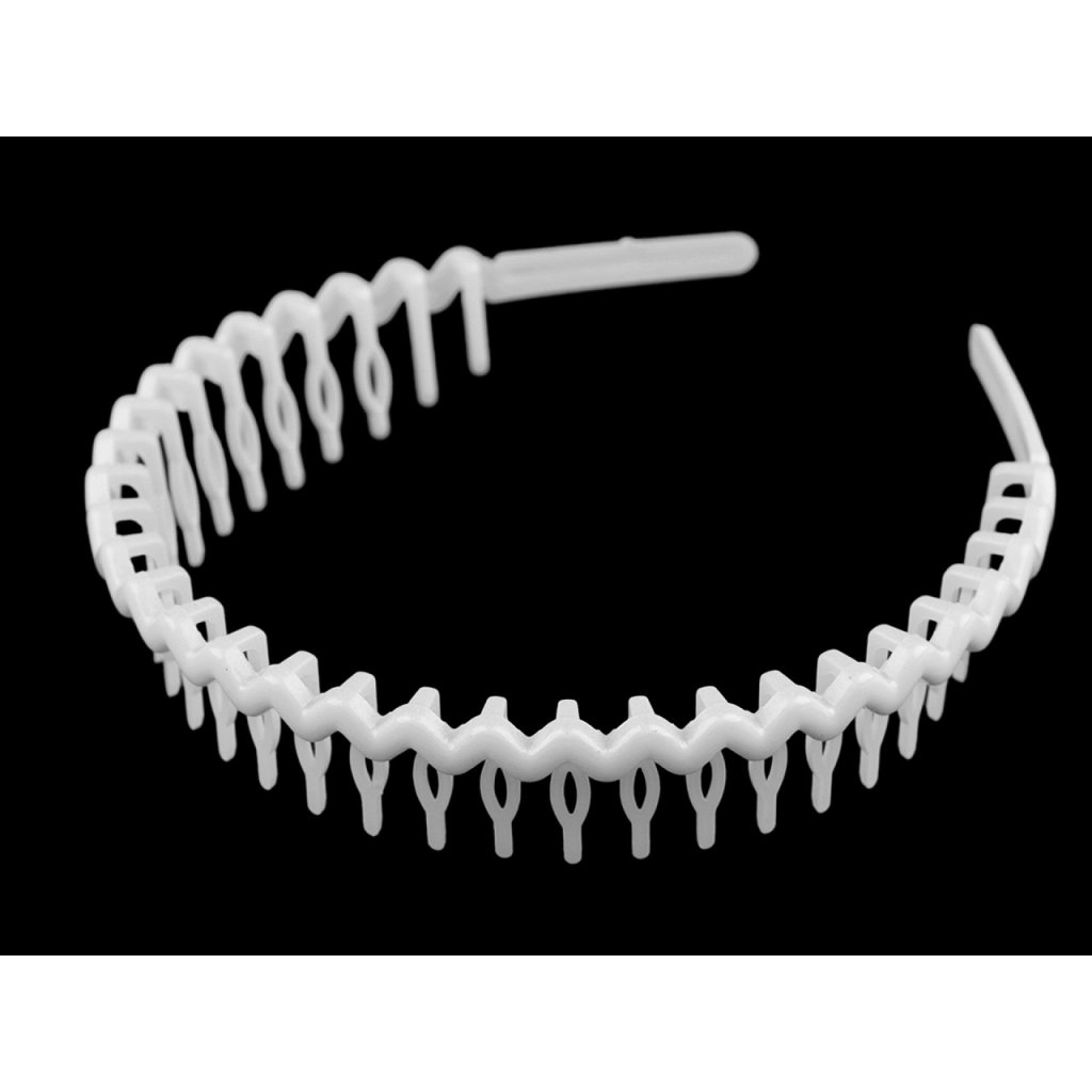 Plastová čelenka s vlnkami a hřebínkem se hodí pro dospělé i děti. Její povrch je lesklý a hladký. Čelenka se velice příjemně nosí, díky hřebínku s dlouhými zuby perfektně drží.